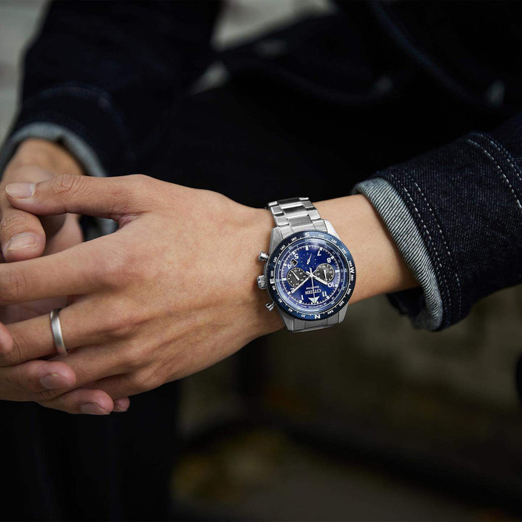 این مدل از ساعت مچی های برند سیتیزن اکودرایو بوده و قابلیت شارژ باطری با نور را دارد و دارای بدنه و بند استیل با رنگهای نقره ای و سرمه ای می باشد. از امکانات منحصر به فرد این ساعت میتوان به کرنوگراف یا چند موتوره بودن آن، نمایشگر روزهای ماه و وضعیت 24 ساعته و ذخیره شارژ باطری تا 9ماه که تعبیه شده در این ساعت اشاره کرد. اکودرایو ها جزو ساعت های رده بالای شرکت سیتیزن هستند و در مدت بسیار کمی مورد پسند و تحسین مردم قرار گرفتند.