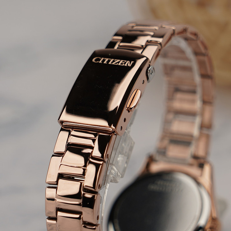 این طرح از ساعت مچی های زنانه برند سیتیزن از طرح های کلاسیک و مجلسی این برند می باشد و از طراحی خاص و منحصر به فردی برخوردار بوده و دارای بند و بدنه استیل با رنگ رزگلد می باشد. این مدل از ساعت مچی های زنانه سیتی زن اکودرایو بوده و قابلیت شارژ با روشنایی و نور را دارند. طراحی های کمپانی سیتیزن منحصر به فرد میباشند این مدل هم ساعت بسیار شیک و ساده میباشد و در عین سادگی با دو رنگ بودن توجه بسیاری جلب میکند. میتواند کادوی مناسبی برای تولد، روز زن، روز دختر و ولنتاین باشد. همچنین این ساعت قابلیت ذخیره شارژ باطری تا 8ماه و نمایشگر روزهای ماه و حلقه نوری را دارد.