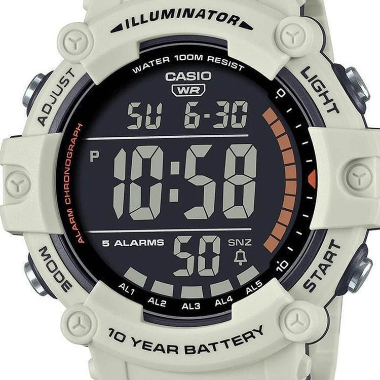 نمایش 24 ساعته , نمایش ساعت دوم , تاریخ شمار , نور پس زمینه , تایمر , آلارم , کرنوگراف , ضد آب