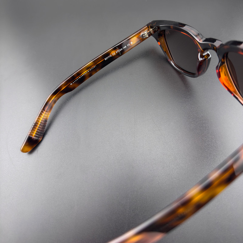 طول هر یک از دسته ها برابر ۱۴8 میلیمتر وزن عینک 34.5 گرم