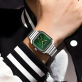 ساعت مچی عقربهای کوارتز کورن، ترکیبی از طراحی مدرن و کاربردی است که برای افرادی که به استایل و دقت در جزئیات اهمیت میدهند، ایدهآل است. بدنهی نقرهای براق این ساعت، ظاهری شیک و هماهنگ با بند استیل همرنگ آن ایجاد کرده که حس راحتی و استحکام را در طول استفاده فراهم میآورد. فرم مربعی صفحه با رنگ سبز خاص و طراحی منحصر بهفرد، جلوهای متمایز به ساعت بخشیده و آن را به انتخابی جذاب برای کسانی که به دنبال تمایز هستند تبدیل میکند. شیشه معدنی مقاوم در برابر خش، از دوام و شفافیت صفحه محافظت میکند. موتور دقیق کوارتز با انرژی باتری، دقت زمانسنجی بینقصی را ارائه میدهد و شما را از نیاز به تنظیمات مکرر بینیاز میکند. مقاومت ساعت در برابر پاشش آب، آن را برای استفاده در شرایط مختلف مناسب میسازد. این ساعت با استایلهای کژوال، رسمی و کلاسیک بهراحتی هماهنگ میشود.
