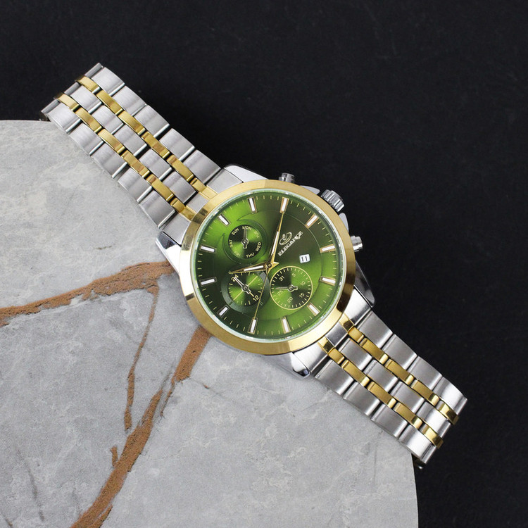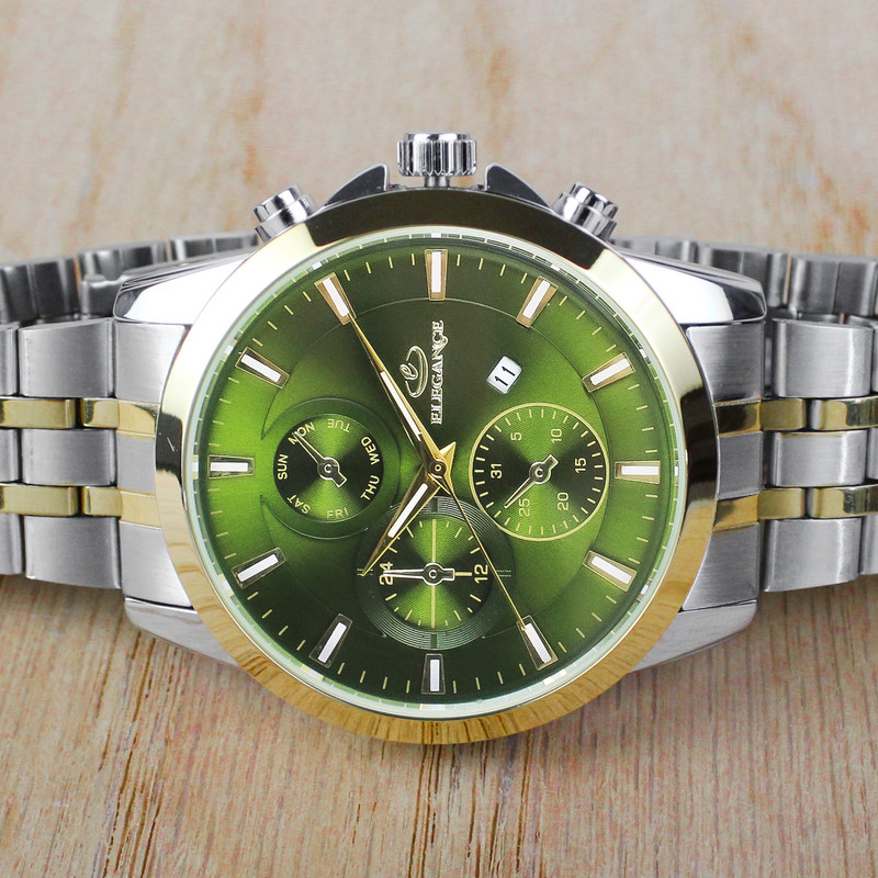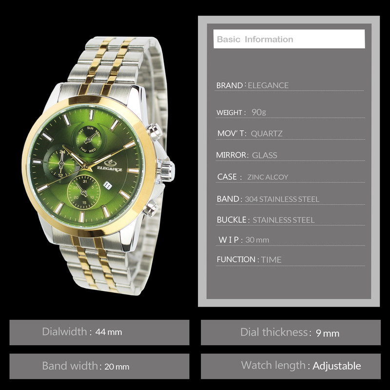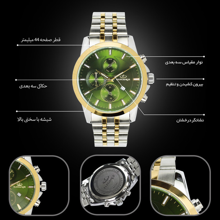 ساعت مچی از گذشته تا حال یکی از محبوب ترین و پرطرفدار ترین اکسسوری های مردانه است و امروزه خریدارن به دنبال ساعت هایی هستند که زیبا و منحصر به فرد باشد. ساعت مچی مردانه الگانس یک برند ژاپنی معروف است که در زمینه ی تولید ساعت های باکیفیت و زیبا شناخته شده است که به دلیل داشتن ویژگی های فوق العاده و شیک به یکی از پرفروش ترین ساعت های جهان تبدیل شده است. این ساعت جزء ساعت های کلاسیک و آنالوگ محسوب می شود و مناسب برای آقایان خوشتیپ می باشد. ساعت مچی الگانس باتری بسیار قوی دارد و دارای بند استیل می باشد. بند استیل، اغلب محبوب ترین انتخاب برای آقایان است. صفحه ی ساعت این برند دارای شیشه با سختی بالا می باشد، همچنین قلب تپنده ی آن یعنی موتور ساعت، از نوع کوارتز است. به دلیل اقتصادی بودن این ساعت فقط موتور اصلی و تقویم آن کار میکند و سه موتور بقیه نمایشی هستند . این ساعت به شکل دایره طراحی شده است که دارای قطر 42 میلی متر و بی نهایت ظریف است . ساعت مچی آنالوگ به ساعت هایی می گویند که دارای اعداد و عقربه می باشند و از قدیم مورد استفاده قرار می گیرند. آقایانی که به استایل های کلاسیک و اصیل علاقه دارند برای خرید ساعت مردانه، ساعت های آنالوگ را انتخاب می کنند. این ساعت دارای موتور بسیار قوی و متریال حرفه ای و استیل بسیار با کیفیت و ضد زنگ می باشند که به استایل اصیل و کلاسیک شما، با طراحی های منحصر به فرد خود، جلوه ی بیشتری خواهد داد. ساعت مچی الگانس با دقت بالایی به انتخاب مواد اولیه و استفاده از تکنولوژی های پیشرفته پرداخته است و مدل های مختلف آن دارای عمق آب گیری مختلفی است که برخی از آن ها مناسب شنا غواصی هستند. این مدل ساعت مچی الگانس مردانه به صورت ضد آب طراحی شده است که آب داخل آن نفوذ نکند و قابلیت تحمل ناشی از فرو رفتن در درون آب را داشته باشد. با وجود این قابلیت دیگر نیازی نیست که در طول روز به دلایل مختلف از جمله شستن دست ها و انجام هر کاری که با آب ارتباط دارد، ساعت مچی خود را از دست باز کنید. ساعت الگانس جزء ساعتهای گران بازار است و همین نشان دهنده کیفیت بالا و متریال درجه یک است . شما می توانید با اطمینان خاطر، این نوع ساعت مچی را برای خود یا برای دوستان و نزدیکان خود خریداری کنید