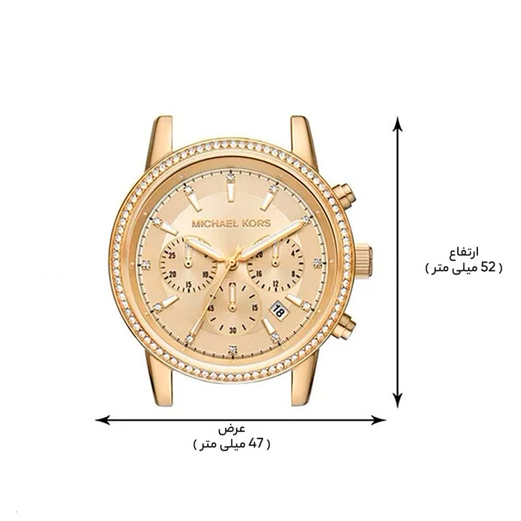 برند مایکل کورس برندی است که توسط کمپانی فسیل گروپ (سومین کمپانی ساعت سازی مطرح دنیا) ساخته می شود. موتور این ساعت توسط کمپانی میوتای ژاپن (بزرگترین کمپانی موتورساعت سازی دنیا) ساخته شده و از نوع کوارتز (باطری دار) است.این ساعت در ابعاد(قطر قاب 41 میلیمتر ضخامت قاب 9 میلیمتر عرض بند 20میلیمتر) طراحی شده و برای سلیقه هایی که ساعت متوسط رو به درشت می پسندند، مناسب است. جنس بند و جنس بدنه این ساعت از استیل ضد حساسیت با کیفیت بالا (318 میکرون) می باشد. از ویژگی های تخصصی این ساعت میتوان به موتور کرنوگراف و تقویم اشاره کرد. مقاومت این ساعت در برابر آب 10 اتمسفر می باشد.