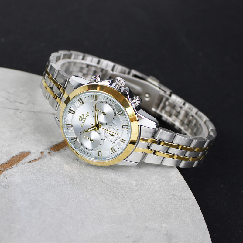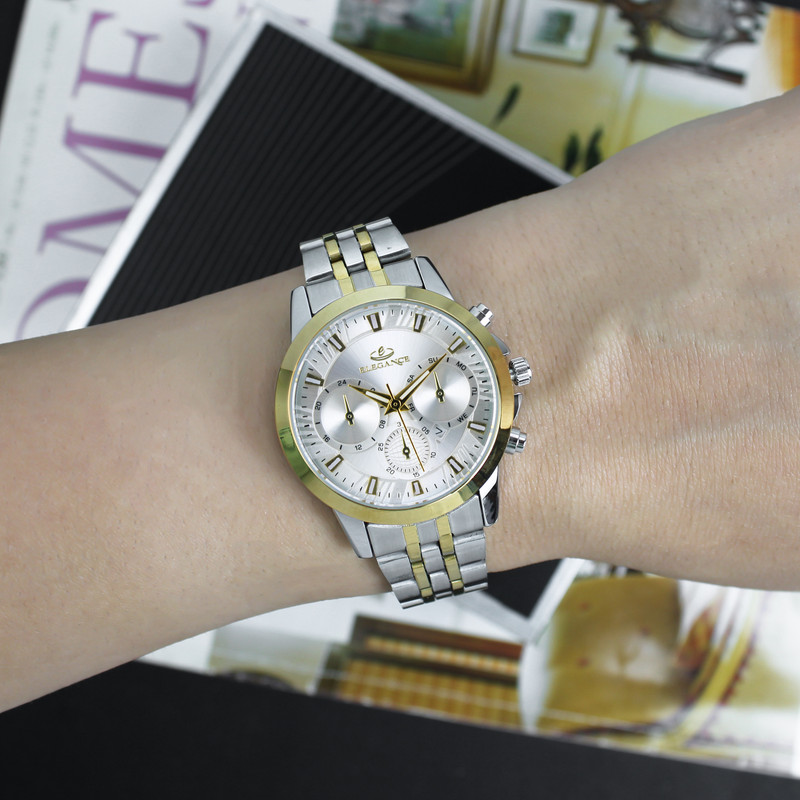 ساعت مچی زنانه از گذشته تا حال یکی از محبوب ترین و پرطرفدار ترین اکسسوری های زنانه است و امروزه خریدارن به دنبال ساعت هایی هستند که زیبا و منحصر به فرد باشد. ساعت مچی زنانه الگانس یک برند ژاپنی معروف است که در زمینه ی تولید ساعت های باکیفیت و زیبا شناخته شده است که به دلیل داشتن ویژگی های فوق العاده و شیک به یکی از پرفروش ترین ساعت های جهان تبدیل شده است. این ساعت جزء ساعت های کلاسیک و آنالوگ محسوب می شود و مناسب برای بانوان خوشتیپ می باشد. ساعت مچی الگانس باتری بسیار قوی دارد و دارای بند استیل می باشد. بند استیل، اغلب محبوب ترین انتخاب برای بانوان است. صفحه ی ساعت این برند دارای شیشه با سختی بالا می باشد، همچنین قلب تپنده ی آن یعنی موتور ساعت، از نوع کوارتز است. به دلیل اقتصادی بودن این ساعت فقط موتور اصلی و تقویم آن کار میکند و سه موتور بقیه نمایشی هستند . این ساعت به شکل دایره طراحی شده است که دارای قطر 38 میلی متر و بی نهایت ظریف است و مناسب برای بانوانی که دستان ظریف دارند توصیه می شود. ساعت مچی آنالوگ به ساعت هایی می گویند که دارای اعداد و عقربه می باشند و از قدیم مورد استفاده قرار می گیرند. بانوانی که به استایل های کلاسیک و اصیل علاقه دارند برای خرید ساعت زنانه، ساعت های آنالوگ را انتخاب می کنند. این ساعت دارای موتور بسیار قوی و متریال حرفه ای و استیل بسیار با کیفیت و ضد زنگ می باشند که به استایل اصیل و کلاسیک شما، با طراحی های منحصر به فرد خود، جلوه ی بیشتری خواهد داد. ساعت مچی الگانس با دقت بالایی به انتخاب مواد اولیه و استفاده از تکنولوژی های پیشرفته پرداخته است و مدل های مختلف آن دارای عمق آب گیری مختلفی است که برخی از آن ها مناسب شنا غواصی هستند. این مدل ساعت مچی الگانس زنانه به صورت ضد آب طراحی شده است که آب داخل آن نفوذ نکند و قابلیت تحمل ناشی از فرو رفتن در درون آب را داشته باشد. با وجود این قابلیت دیگر نیازی نیست که در طول روز به دلایل مختلف از جمله شستن دست ها و انجام هر کاری که با آب ارتباط دارد، ساعت مچی خود را از دست باز کنید. ساعت الگانس جزء ساعتهای گران بازار است و همین نشان دهنده کیفیت بالا و متریال درجه یک است . شما می توانید با اطمینان خاطر، این نوع ساعت مچی را برای خود یا برای دوستان و نزدیکان خود خریداری کنید