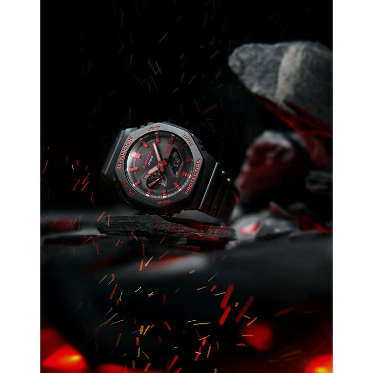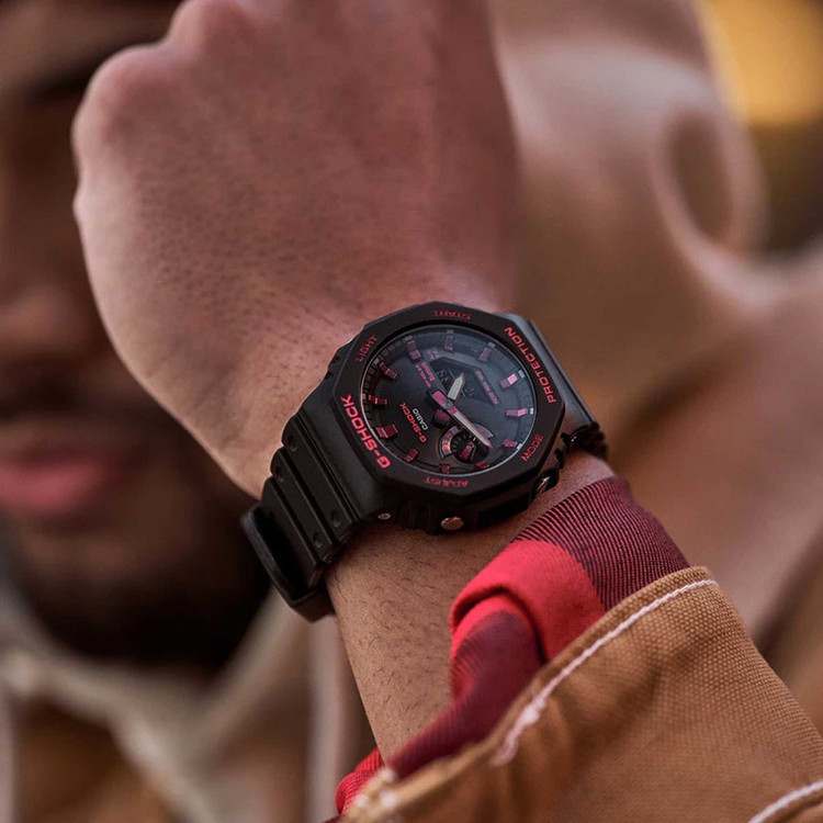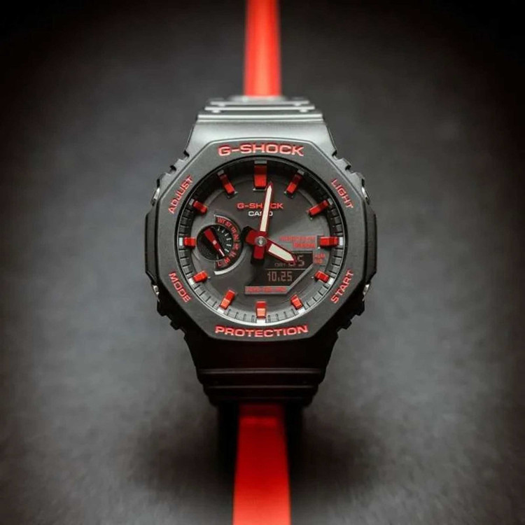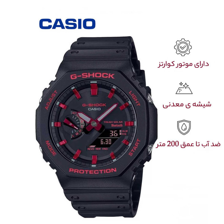 ساعت مچی عقربهای مردانه کاسیو مدل GA-B2100BNR-1ADR، گزینهای بینظیر برای آقایانی است که به دنبال ترکیبی از استایل، عملکرد و دوام هستند. این ساعت با صفحه مشکی و طراحی چندضلعی، جلوهای مدرن و منحصر به فرد به مچ دست شما میبخشد. بدنه و بند مشکی از جنس رزین و رابر، هم مقاومت و هم راحتی را تضمین میکند. شیشه معدنی مقاوم در برابر خط و خش نیز ماندگاری بالایی دارد. موتور کوارتز با دقت بالا عملکردی بینقص ارائه میدهد و ویژگیهای خاصی مانند نمایش 24 ساعته، ساعت دوم، تاریخ شمار، نور پسزمینه، تایمر و آلارم، آن را برای استفاده روزمره و ورزشی مناسب میسازد. قفل سگکی ساده بند رزین، به امنیت و راحتی در استفاده کمک میکند. با قطر صفحه 48.5 میلیمتر و ضخامت 11.9 میلیمتر، این ساعت طراحی باریک و جذابی دارد. اگر به دنبال ساعتی هستید که در فعالیتهای ورزشی و در موقعیتهای روزمره به چشم بیاید، ساعت کاسیو مدل GA-B2100BNR-1ADR، انتخابی ایدهآل است که به شما امکان میدهد همیشه بهترین نسخه از خود را به نمایش بگذارید.
