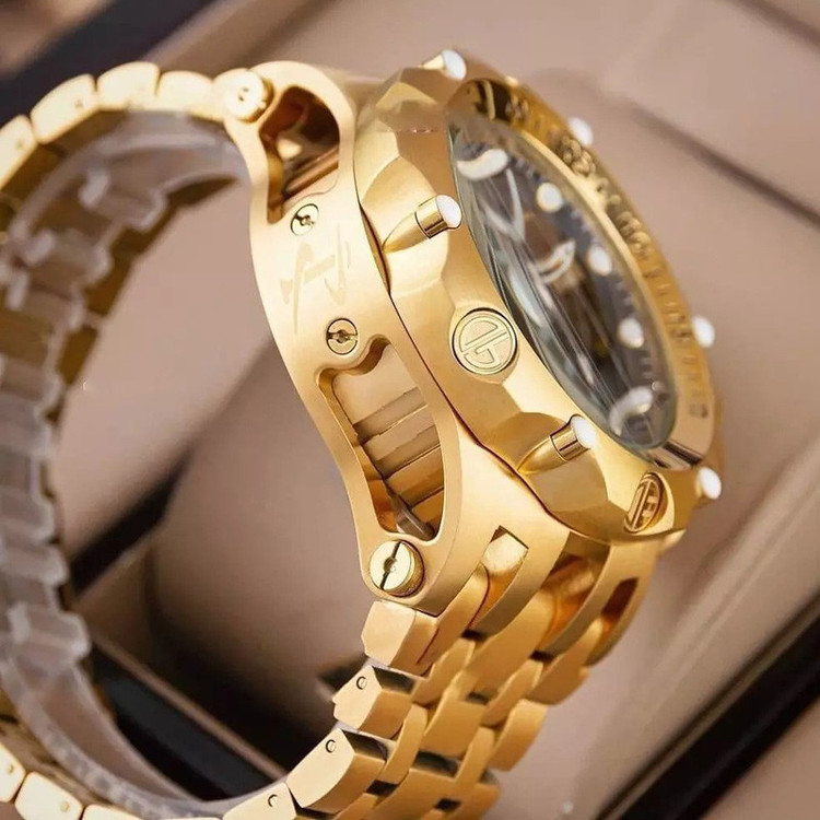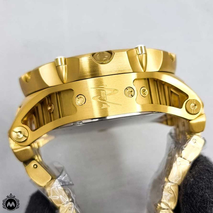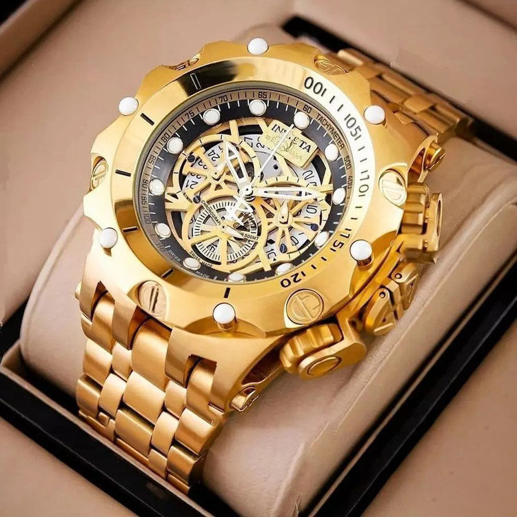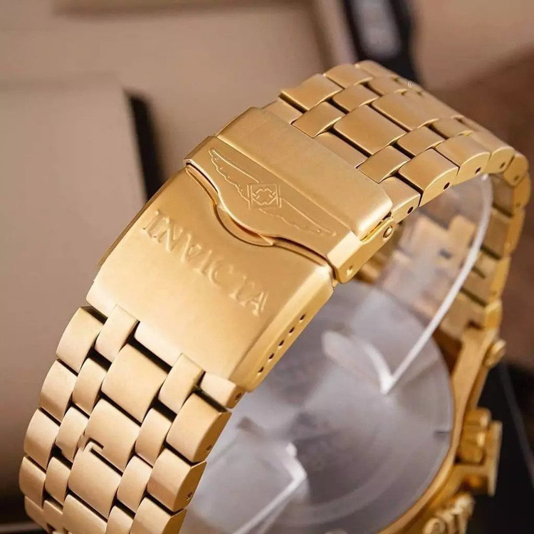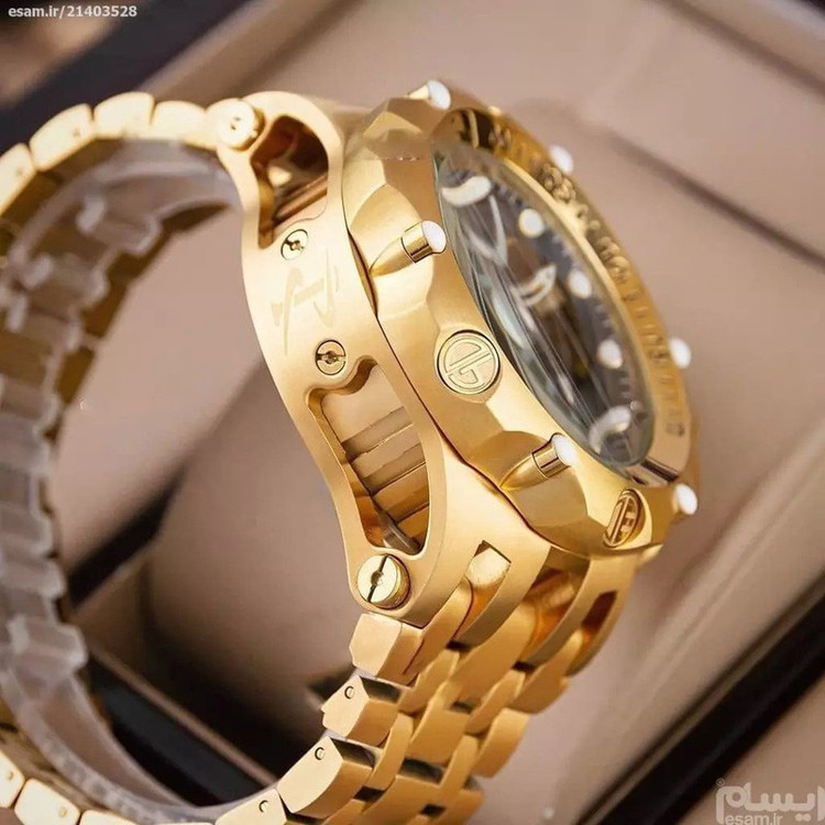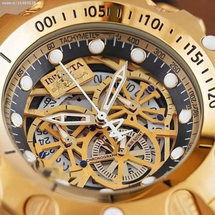 شاهکار غول پیکر دیگری از برند مطرح سوئیسی، Invicta Watch . شاهکاری که اگر اهل ساعت هم نباشید، تا حالا ساعت هم نینداخته باشید و یا حتی اگر از ساعت مچی هم خوشتان نیاید، با دیدنش وسوسه خواهید شد. همان ساعتی است که شاید شما را مدهوش کند! فقط نگاهی به ابهت این ساعت مچی بیاندازید و روزی را در ذهنتان ببینید که یکی ازین ساعت ها را در دستتان دارید! مطمئنا خیره کننده خواهد بود! قاب براق به همراه بند و قفل استیل آن هر کسی را مجذوب خودش می کند. مسلما یکی از نقاط قوت ساعت مچی Invicta صفحه بزرگ 55 میلی متری آن است. به این نقاط قوت موتور سوئیسی از نوع کوارتزی را هم اضافه کنید. ساعتی که اگر مراقبش باشید حالا حالاها برایتان کار خواهد کرد. شیشه استفاده شده در این نوع ساعت مچی ضدخش است. همچنین دارای تقویم میلادی است که شما را از نگاه کردن به صفحه گوشی تان برای چک کردن دائم ساعت و تقویم بی نیاز می کند. پاندول روان و پشت شیشه ای (اتوماتیک) و محافظ پین کوک از دیگر مشخصات این ساعت هست