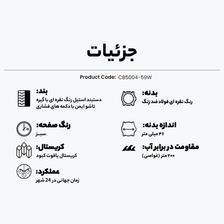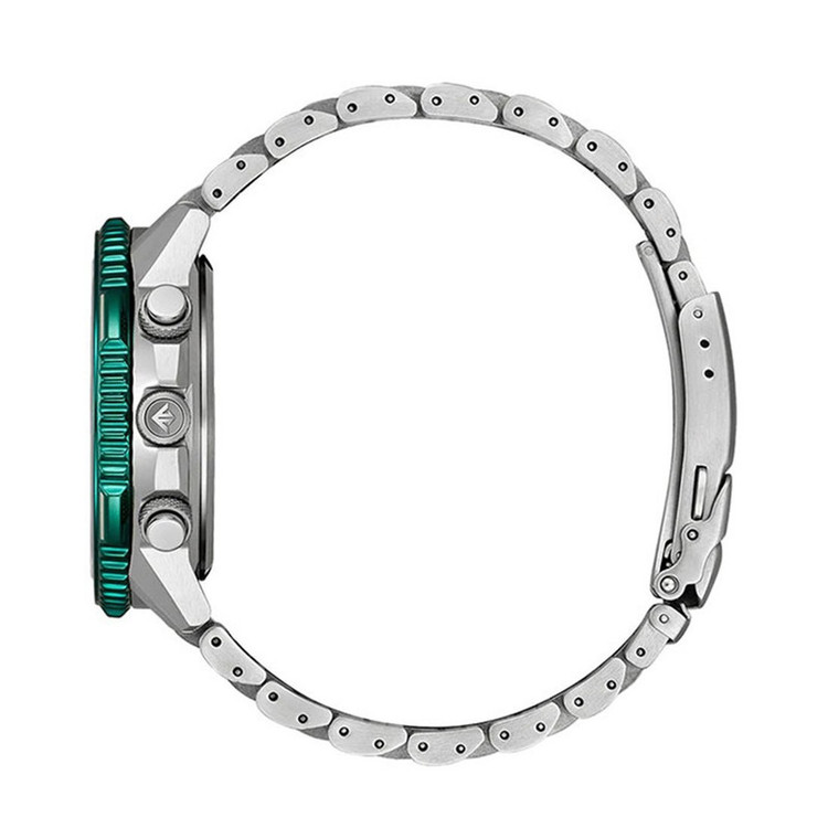 این مدل از ساعت مچی های مردانه برند سیتیزن دارای بدنه و بند استیل نقره ای و سبز بوده و با صفحه سبز رنگ خاص خود صاحب ابهت و جذابیت بی نظیری شده است. این ساعت برند سیتیزن اکودرایو بوده و قابلیت شارژ با نور محیط را دارد. همچنین این ساعت سیتیزن دارای امکانات پرومستر و خلبانی و تنظیم رادیویی و تقویم بی نهایت و وقت جهانی و زمان سنج 24 ساعت و هشدار میباشد. از ویژگی های منحصر بفرد این طرح از ساعت سیتیزن میتوان به قابلیت ذخیره شارژ باطری تا 36ماه و نمایشگر روزهای ماه و هفته و نمایشگر وضعیت 24 ساعته اشاره کرد.