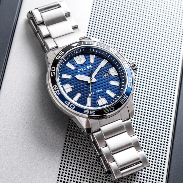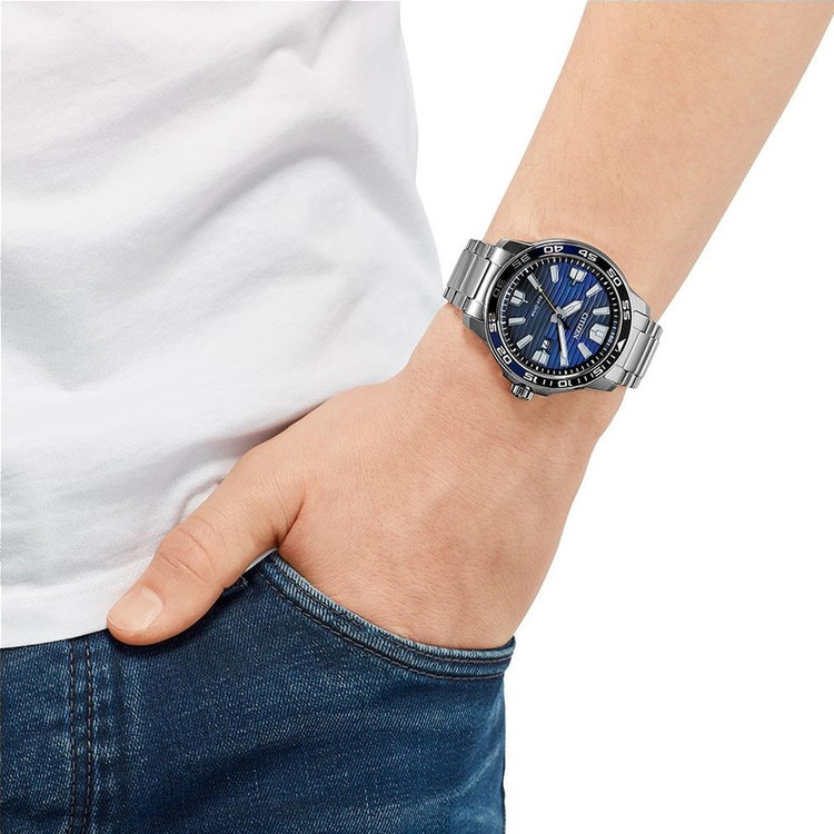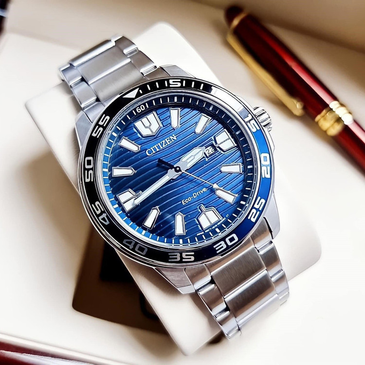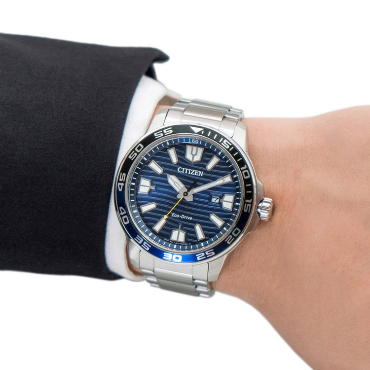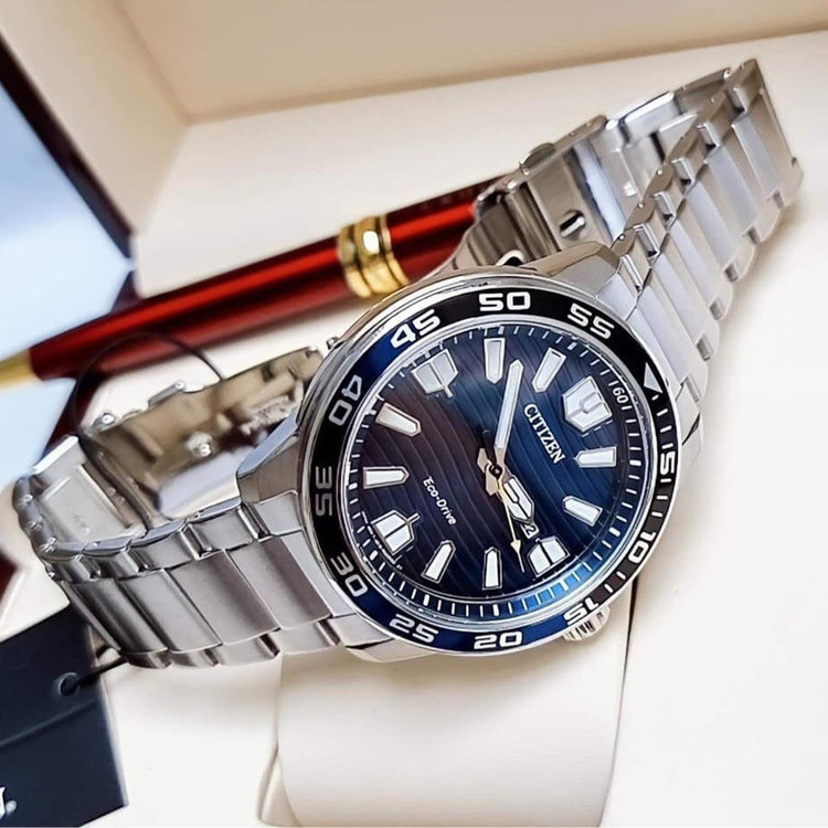 این طرح از ساعت مچی های مردانه برند سیتیزن برای تیپ کلاسیک و مجلسی طراحی شده است. این مدل از ساعت های برند سیتیزن اکودرایو بوده و قابلیت شارژ با نور محیط را دارد و جزو ساعت های پرفروش این برند می باشد و دارای بند و بدنه استیل نقره ای و سرمه ای بوده و با صفحه سرمه ای رنگش ترکیب رنگ زیبایی را به نمایش گذاشته است. این ساعت دارای امکانات نمایشگر روزهای ماه و ذخیره شارژ باطری تا 8 ماه و حلقه نوری می باشد.
