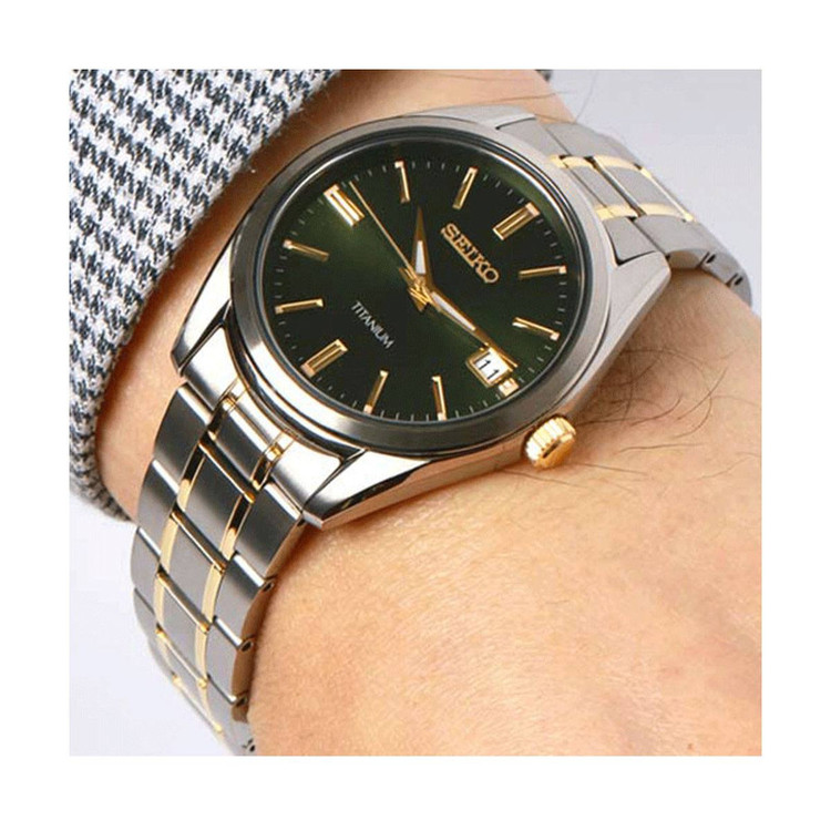 این طرح از برند ساعت سیکو با طراحی و رنگ خاص خود برای تیپهای مجلسی بسیار مناسب میباشد. بند و بدنه ی این ساعت سیکو از جنس تیتانیوم است که از ترکیب رنگ های نقره ای و طلایی و سبز در آن استفاده شده است. از ویژگیهای منحصر به فرد این ساعت میتوان به طراحی بسیار شیک و مجلسی ساعت اشاره کرد. این ساعت دارای نمایشگر روزهای ماه بوده و مقاومت آن در برابر آب 100 متر است.