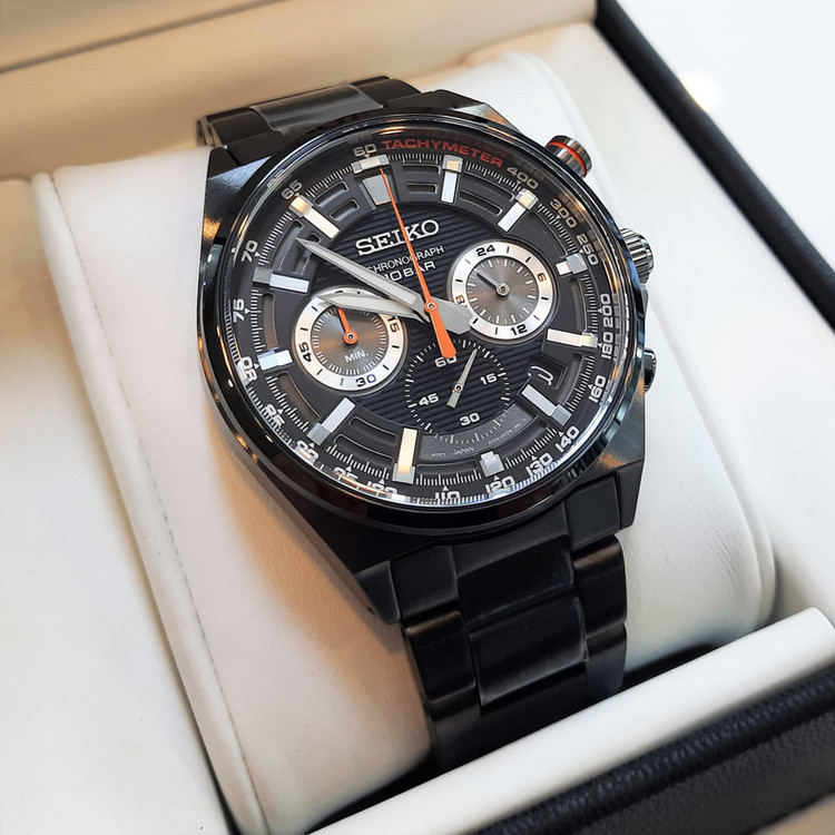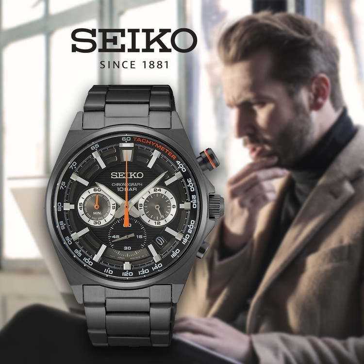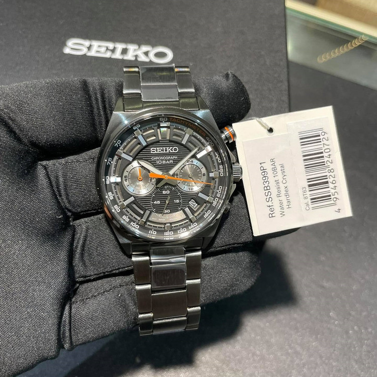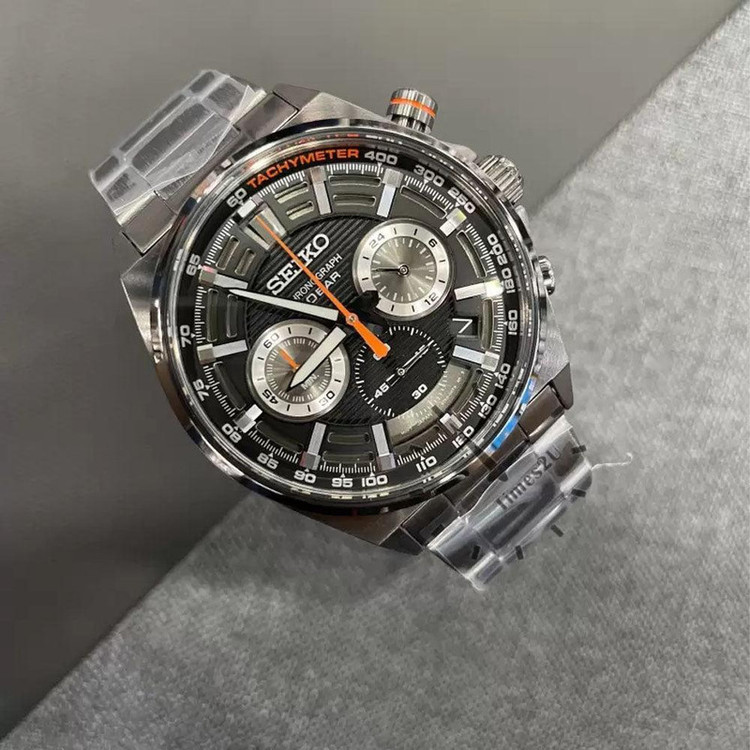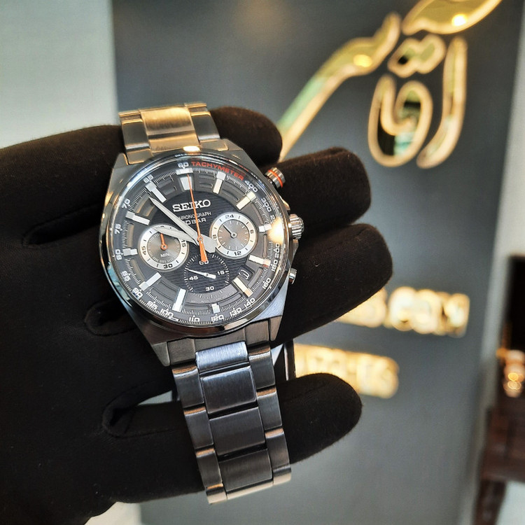 این طرح از برند ساعت سیکو با طراحی و رنگ خاص خود برای تیپهای نسبتا اسپرت بسیار مناسب میباشد. بند و بدنه ی این ساعت سیکو از جنس استیل است که از رنگ مشکی در آن استفاده شده است. از ویژگیهای منحصر به فرد این ساعت میتوان به طراحی بسیار شیک و اسپرت ساعت در عین مجلسی بودنش اشاره کرد. این ساعت سیکو چند موتوره یا کرنوگراف بوده و عقربه های کوچک آن کرنومتر هستند و همچنین دارای نمایشگر روزهای ماه و وضعیت 24ساعته نیز هست. اعداد دور بدنه این ساعت سرعت سنج (تاچمتر) هستند که برای محاسبه و سنجش سرعت استفاده می شوند.