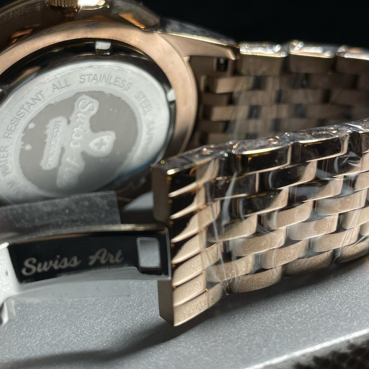 این ساعت ترکیبی از دقت، ظرافت و دوام است. بند استیل ۳۱۶ با طراحی بافت ریز و یکپارچه، علاوه بر استحکام فوقالعاده، جلوهای لوکس و راحتی بینظیری روی مچ ایجاد میکند. این ساختار باعث میشود بند بهنرمی روی دست قرار بگیرد و در عین حال مقاومت بالایی در برابر خوردگی و خطوخش داشته باشد. موتور Ronda Swiss قلب تپنده این ساعت است که با دقت بالا و عملکرد قابلاعتماد، نشاندهنده استانداردهای ساعتسازی سوئیسی است. این موتور، علاوه بر طول عمر بالا، حرکت عقربهها را نرم و دقیق نگه میدارد. شیشه سافایر، که در برابر خطوخش بسیار مقاوم است، صفحه ساعت را در برابر آسیبهای روزمره محافظت میکند. شفافیت بینظیر این شیشه، جلوهای خاص به صفحه داده و خوانایی اعداد و عقربهها را در هر شرایطی تضمین میکند. این ساعت، ترکیبی از ظرافت و قدرت، انتخابی بینقص برای کسانی است که به دقت و کیفیت اهمیت میدهند.