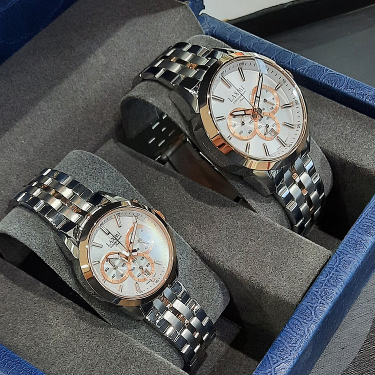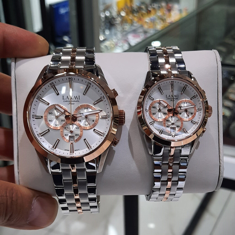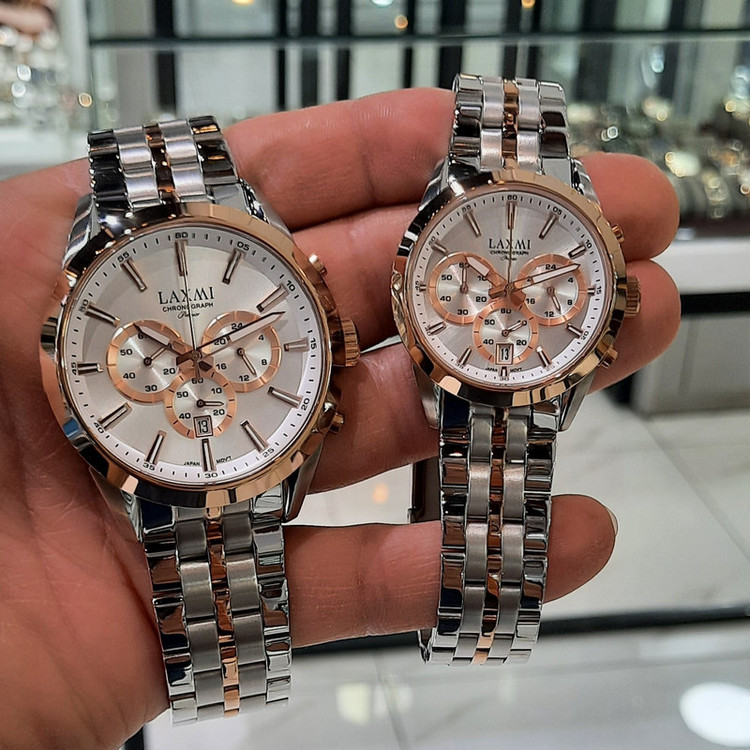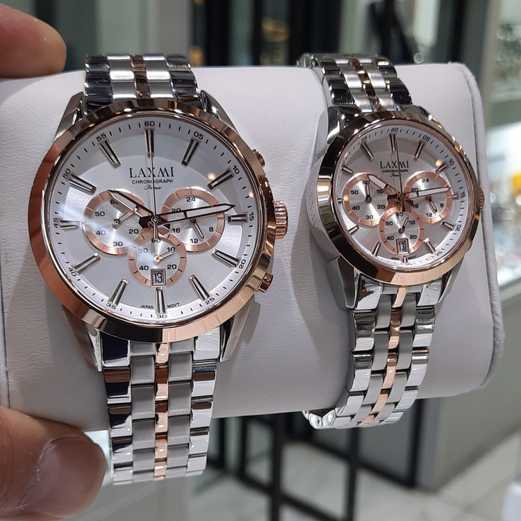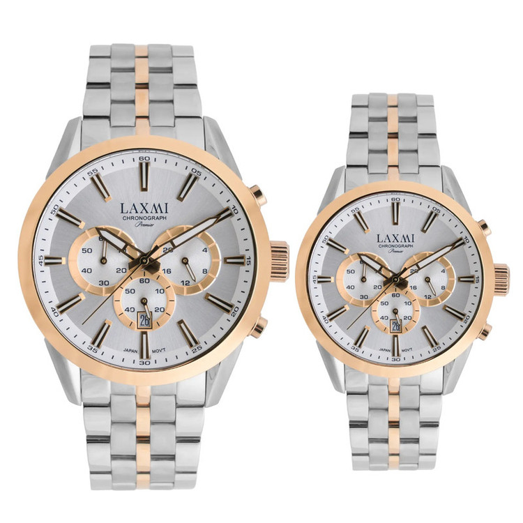 این مدل از برند لاکسمی از زیبا ترین و پر فروش ترین ساعتهای این برند میباشد. در طراحی این ساعت به سلیقه ی افراد جوان دقت شده و جزئیات طراحی به صورتی است که مورد پسند جوانان باشد. در این ساعت از دو رنگ نقره ای و رزگلد استفاده شده تا بتوان به راحتی با زیور آلات و انگشتر ها و البسه ست کرد. رنگ رزگلد از رنگهای بروز در طراحی زیور آلات و ساعت به شمار میرود. یکی دیگر از مولفه هایی که این ساعت را متمایز میکند استفاده از رنگ غالب نقره ای میباشد که با زیورآلات به راحتی میتوان آن را ست کرد. از جزئیات دیگر این ساعت میتوان به سه موتوره بودن ساعت اشاره کرد که جوان پسند بوده و حالتی نیمه اسپرت به ساعت میبخشد. این ساعت یک ساعت نیمه اسپرت بوده و برای استفاده ی روزمره و مجلسی بسیار مناسب میباشد. درباره ی امکانات ساعت میتوان به کرنوگراف و یا سه موتوره بودن ساعت اشاره کرد که عقربه های کوچک کرنومتر بوده و میتوان با آن تایم گرفت. این طرح از برند لاکسمی ست میباشد و برای عروس و داماد های نازنین گزینه ی بسیار عالی به شمار میرود.