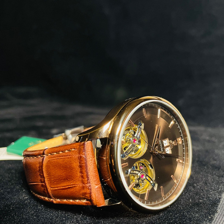 مکانیزم پیچیدهی توربیلون دوقلو، دقت بینظیر این ساعت را تضمین کرده و جذابیت بصری آن را دوچندان میکند. نمایشگر بزرگ تاریخ، خوانایی بالایی را فراهم آورده و کاربردی بودن طراحی را نشان میدهد. صفحهی ساعت با شیشهی سافایر پوشانده شده که از خط و خش جلوگیری کرده و وضوح بینظیری را فراهم میکند. بند چرمی ایتالیایی با دوختی ظریف، علاوه بر زیبایی، راحتی فوقالعادهای روی مچ ایجاد میکند. ترکیب عقربههای ظریف و شاخصهای برجسته روی صفحهای با پسزمینهی مینیمال، جلوهای شیک و مدرن به ساعت بخشیده است. این مدل اتوماتیک بوده و با حرکت دست انرژی خود را تأمین میکند، که نشانهای از مهندسی پیشرفته و کیفیت برتر آن است.
