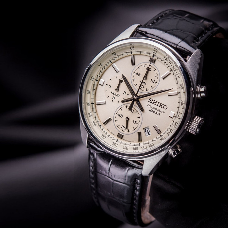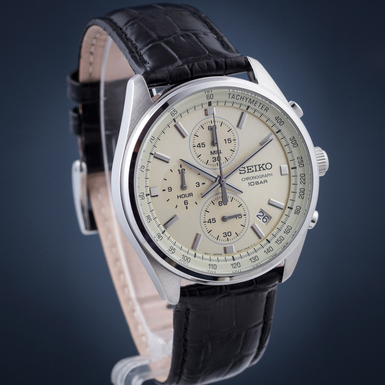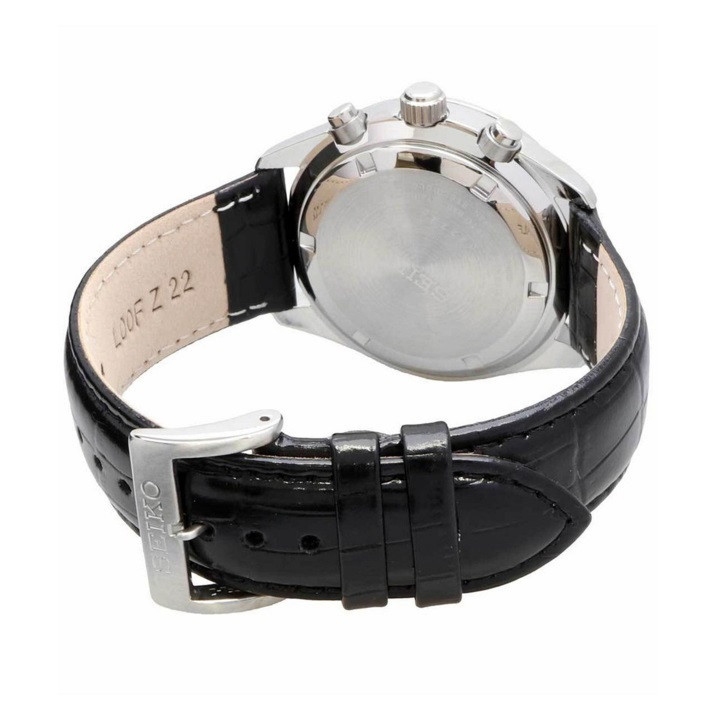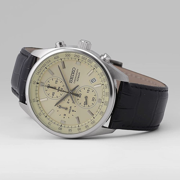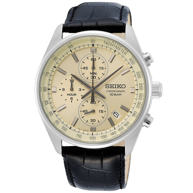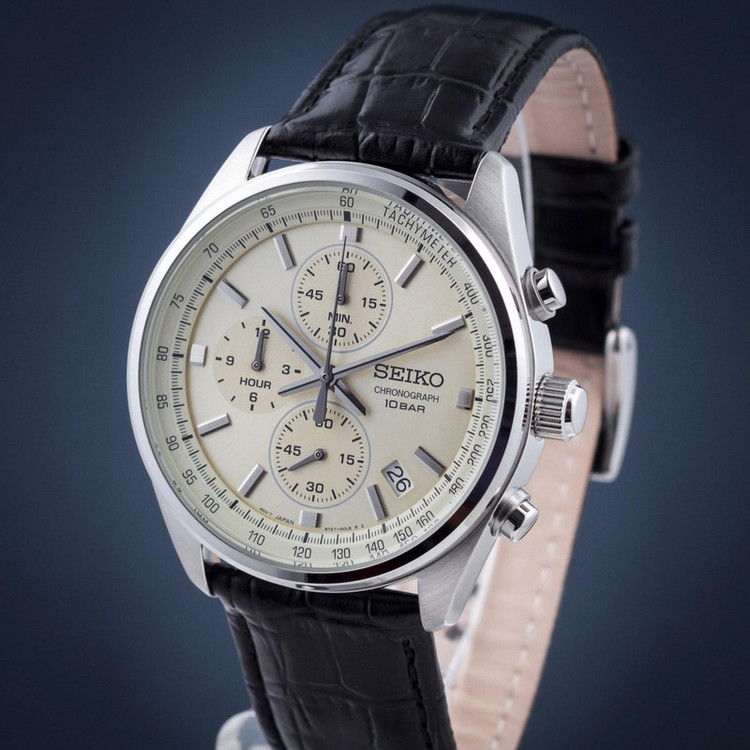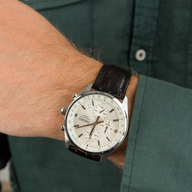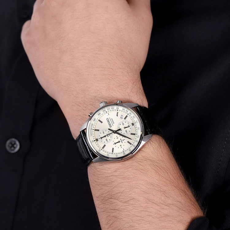 این طرح از برند ساعت سیکو با طراحی و رنگ خاص خود برای تیپهای نسبتا اسپرت بسیار مناسب میباشد. بند چرمی و بدنه ی این ساعت سیکو از جنس استیل است که از رنگ های مشکی و نقره ای و کرم در آن استفاده شده است. از ویژگی های منحصر به فرد این ساعت میتوان به طراحی بسیار شیک و اسپرت ساعت در عین مجلسی بودنش اشاره کرد. این ساعت سیکو چند موتوره یا کرنوگراف بوده و عقربه های کوچک آن کرنومتر هستند و همچنین دارای نمایشگر روزهای ماه نیز هست. این ساعت دارای سرعت سنج (تاچمتر) نیز می باشد.