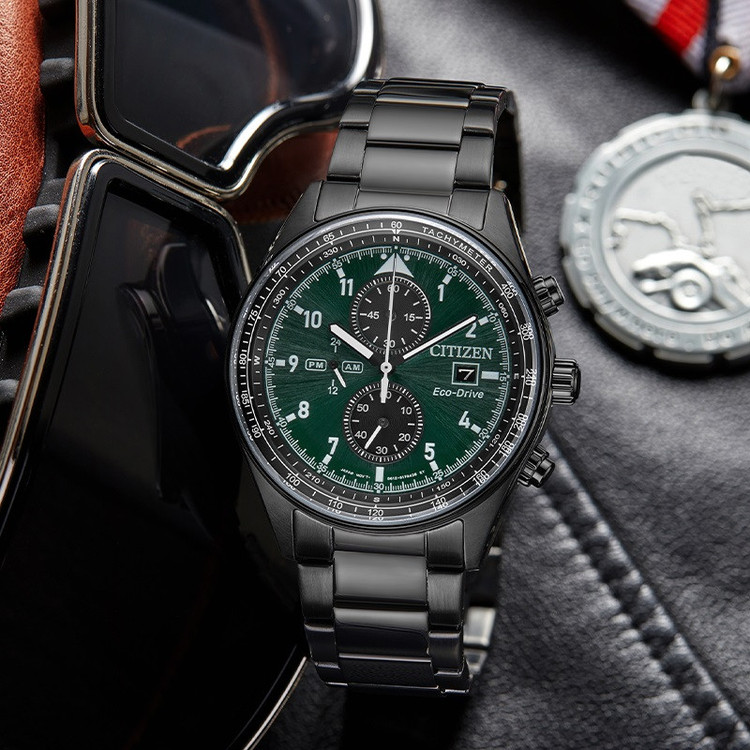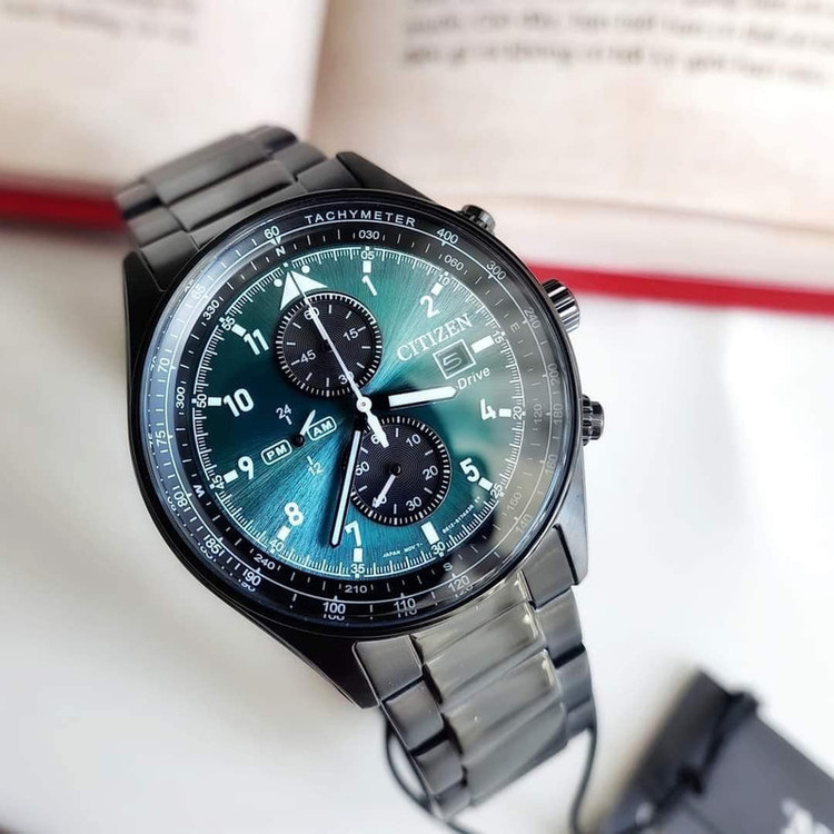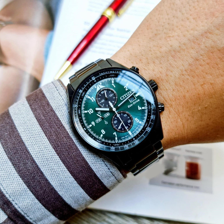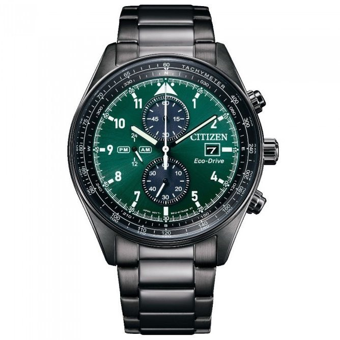 این مدل از ساعت مچی های برند سیتیزن اکودرایو بوده و قابلیت شارژ باطری با نور را دارد و دارای بدنه و بند با رنگ مشکی و صفحه سبز رنگ می باشد. از امکانات منحصر به فرد این ساعت میتوان به کرنوگراف یا چند موتوره بودن آن، نمایشگر روزهای ماه و وضعیت 24 ساعته و ذخیره شارژ باطری تا 7ماه که تعبیه شده در این ساعت اشاره کرد. اکودرایو ها جزو ساعت های رده بالای شرکت سیتیزن هستند و در مدت بسیار کمی مورد پسند و تحسین مردم قرار گرفتند. اعداد کوچک دور این صفحه ی ساعت نیز سرعت سنج میباشد.