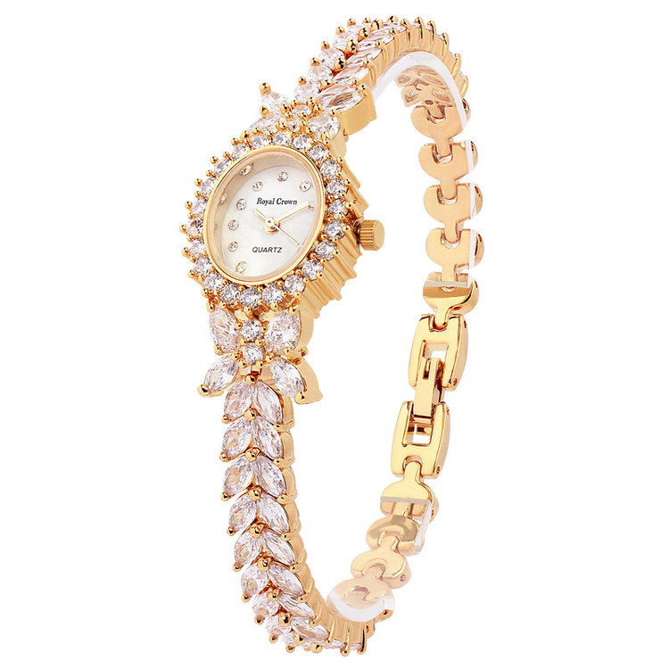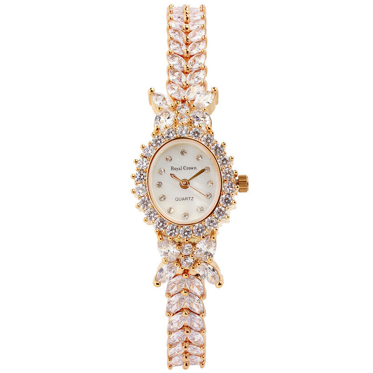ساعت مچی عقربه ای زنانه رویال کرون مدل گلد نگین کاری