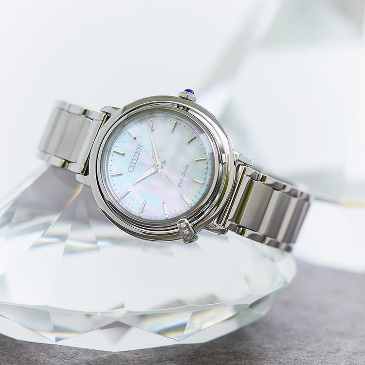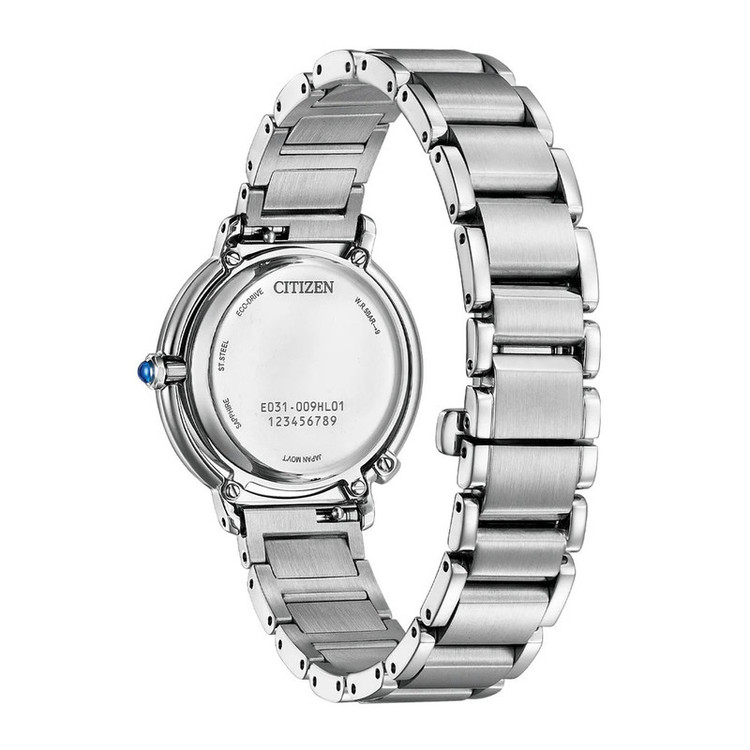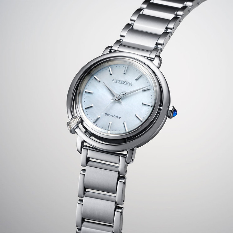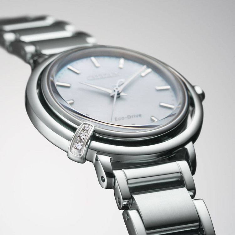 این مدل از ساعت سیتیزن از سری ال سیتیزن میباشد و از پرفروشترین و لوکس ترین ساعتهای سیتیزن است. طراحی بسیار زیبا و شاخص این مدل آن را به یکی از برترین طراحی های ساعت تبدیل کرده. صفحه ی این ساعت صدف طبیعی بوده و زیبایی چشم نوازی به ساعت میبخشد. همچنین نگینهای استفاده شده در گوشه ی سمت چپ این مدل از سیتیزن الماس طبیعی است که ارزش این ساعت را در رده ی لوکس قرار میدهد. این ساعت از برند سیتیزن دارای دو بند استیل و چرم میباشد که همراه ساعت هر دو ارسال میشوند و تعویض این بند ها به راحتی با یک ضامن در پشت ساعت انجام میشود. طراحی یک حلقه دور صفحه ی ساعت از ابداعات سیتیزن بوده و یک جذابیت خاصی به ساعت میبخشد. جنس شیشه ی ساعت نیز یاقوت و ضد خش میباشد. بند و بدنه ی این مدل از سیتیزن از استیل 318L است که بهترین و مقاومترین نوع استیل است. بند همراه این ساعت نیز از جنس چرم طبیعی است.