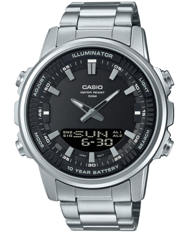 نمایش 24 ساعته , عقربههای شبتاب , نور پس زمینه , تایمر , تاریخ شمار , آلارم , شیشه ضدخش , کرنوگراف , ضد آب