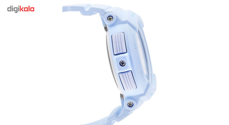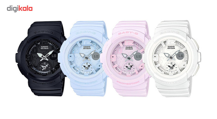 ساعت مچی دیجیتالی زنانه «کاسیو» مدل «BGA-190BC-2BDR» یکی از ساعتهای اسپرت و جذاب زنانه است که در سری ساعتهای مهیج و مطرح «جیشاک» از این برند ژاپنی دسته بندی میشود. اگر از طرفداران این سبک از ساعتهای ورزشی هستید، این مدل با کیفیت و دقت قابل توجه و قابلیتهای کارآمد و مهیج خود بدون شک یکی از بهترین گزینههایی است که میتوان در نظر داشت. در ساخت این ساعت از پلاستیک استفاده شده که علاوه بر ماندگاری بالا، وزن سبک و کاملا قابلقبول ساعت را نیز به همراه دارد. شیشهی ساعت هم از نوع معدنی (Mineral) است که ماندگاری و ارزش خرید بالایی را تضمین میکند. بندی که برای ساعت در نظر گرفته شده هم از نوع رابری یا لاستیکی است که همچنان راحت، سبک و بادوام خواهد بود. سگک ساده اتصال بند هم در کنار تضمین استحکام بند، ظاهری جذاب به این مدل اسپرت بخشیده است. قابلیتهای ساعت هم به طور خلاصه عبارتاند از تاریخشمار، که شاید کارآمدترین قابلیت برای عموم افراد است، آلارم، نور پسزمینه و تایمر که روی صفحه طراحی شده است. در مجموع این مدل را میتوان یکی از مهیجترین ساعتهای اسپرت ژاپنی از برند مطرح کاسیو در نظر گرفت که با توجه به کیفیت بالا و طراحی فوقالعاده زیبا و جذاب، هدیهای باارزش و ماندگار نیز خواهد بود.