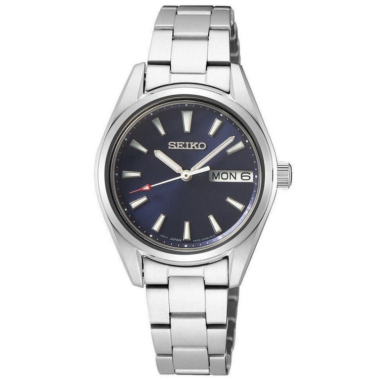 این طرح از برند ساعت سیکو با طراحی و رنگ خاص خود برای تیپهای مجلسی بسیار مناسب میباشد. بند و بدنه ی این ساعت سیکو از جنس استیل است که از رنگ های نقره ای و سرمه ای در آن استفاده شده است. از ویژگیهای منحصر به فرد این ساعت میتوان به طراحی بسیار شیک و مجلسی ساعت در عین سادگی آن اشاره کرد. همچنین این ساعت دارای نمایشگر روزهای ماه و هفته نیز میباشد.