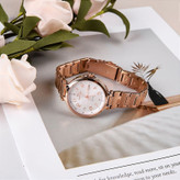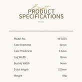 از پرطرفدارترین اکسسوریهای مردانه و زنانه، ساعتهای مچی هستند که در انواع مختلف عقربهای و دیجیتال در بازار عرضه میشوند. معمولا ساعتهای مچی دارای تاریخشمار روز، ماه و سال نیز هستند که در دو نوع مکانیکی و کوارتز وجود دارند. ساعت مچی عقربه ای زنانه نیوی فورس مدلnf5033 دارای موتور کوارتز بوده، این نوع محصول نیروی مورد نیاز خود را از طریق یک باتری تامین میکنند. این مدل ساعتها در اندازهگیری زمان بسیار دقیق و قابل اعتماد بوده و درصد خطای آنها کمتر از انواع دیگر است. ساعت مچی عقربه ای زنانه نیوی فورس مدل nf5033 دارای مقاومت در برابر آب 3 متر است، این ساعت دارای جنس بدنه استیل نقره ای رنگ بوده و قابل استفاده برای بانوان است. جنس شیشه این محصول نیز معدنی است. این ساعت عقربهای زنانه دارای ظاهری شیک و جذاب بوده و برای استفاده در شرایط رسمی و نیمهرسمی کاملا مناسب خواهد بود