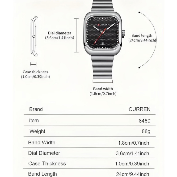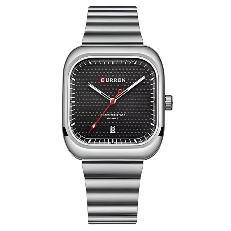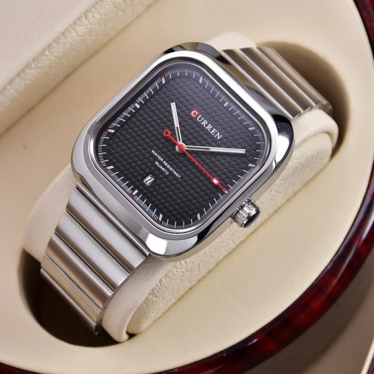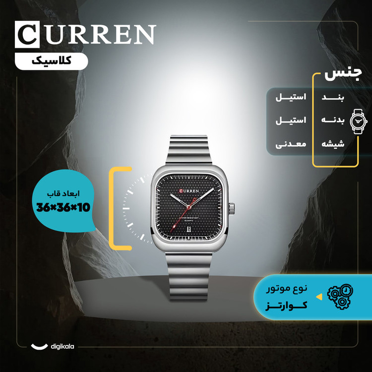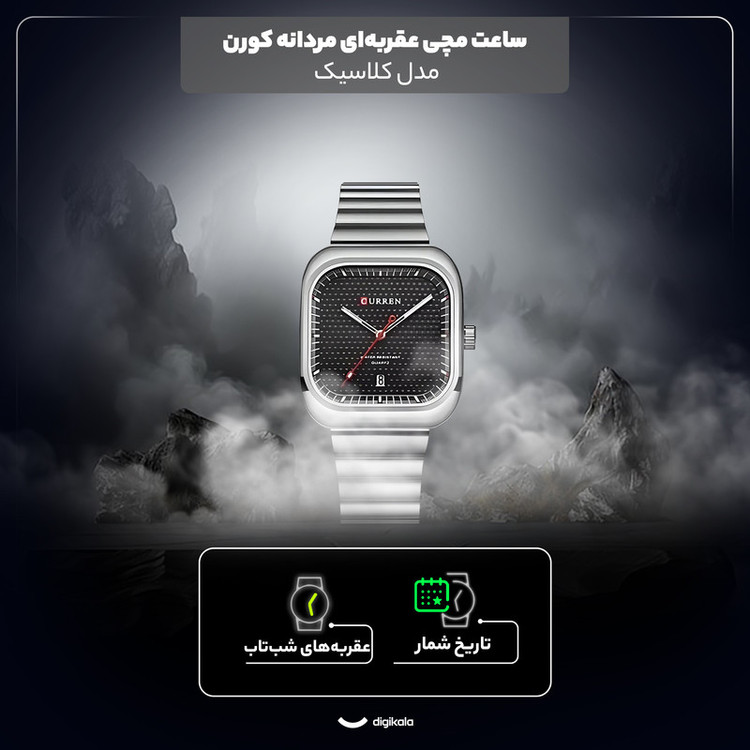 اگر بهدنبال یک ساعت مردانه هستید که در عین سادگی، تمام ویژگیهای یک اکسسوری لوکس و کاربردی را در خود داشته باشد، ساعت مچی عقربهای مردانه کوارتز کورن انتخابی هوشمندانه و جذاب است. این ساعت با بدنهای به رنگ نقرهای و بندی از جنس استیل همرنگ، نمایی شیک و رسمی دارد که در هر موقعیتی، از جلسات کاری گرفته تا مهمانیهای نیمهرسمی، به خوبی میدرخشد. رنگ بند و بدنه، با ظرافت تمام با یکدیگر هماهنگ شدهاند تا حس یکپارچگی و وقار را القا کنند. فرم صفحه مربعی شکل، حالوهوایی مدرن به طراحی کلی داده و در ترکیب با رنگ مشکی صفحه و طراحی طرحدار آن، ظاهری متمایز و مردانه ایجاد کرده است. استفاده از شیشهی معدنی مقاوم در ساخت این ساعت، تضمینی برای دوام و مقاومت آن در برابر خراشهای روزمره است، درحالیکه براق بودن آن، جلوهای خاص به صفحهی ساعت میبخشد. بند استیل این مدل، علاوهبر استحکام بالا، انعطافپذیری مناسبی نیز دارد که باعث میشود هنگام استفادهی طولانی مدت، احساس راحتی کاملی داشته باشید. قلب تپندهی این ساعت، یک موتور کوارتز دقیق و قابل اعتماد است که با منبع انرژی باتری کار میکند؛ ترکیبی که نهتنها دقت بالایی را تضمین میکند، بلکه نیاز به مراقبت و تنظیم مجدد را به حداقل میرساند.