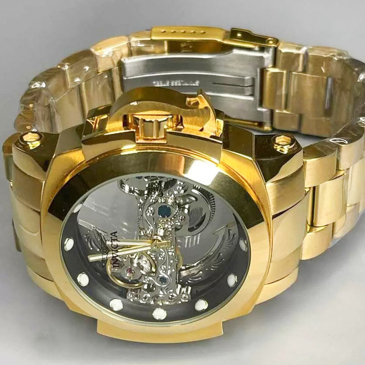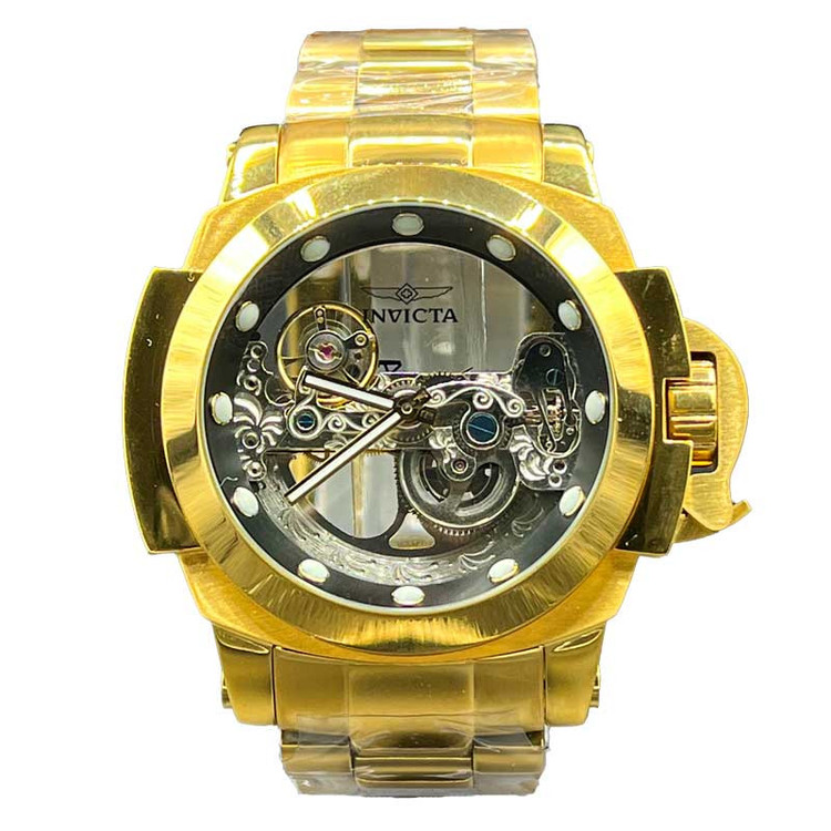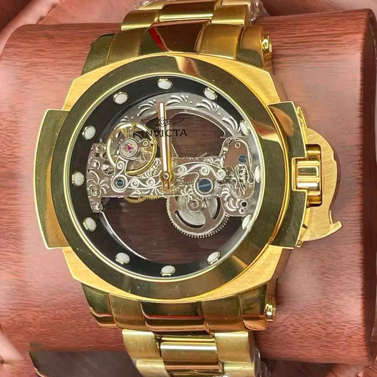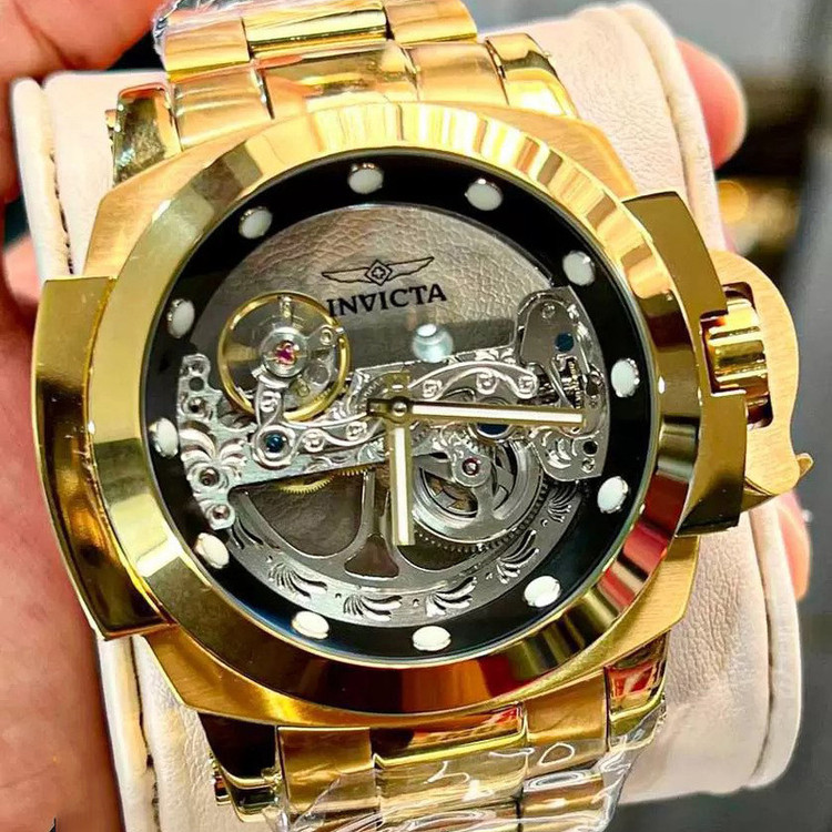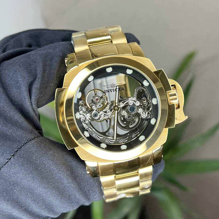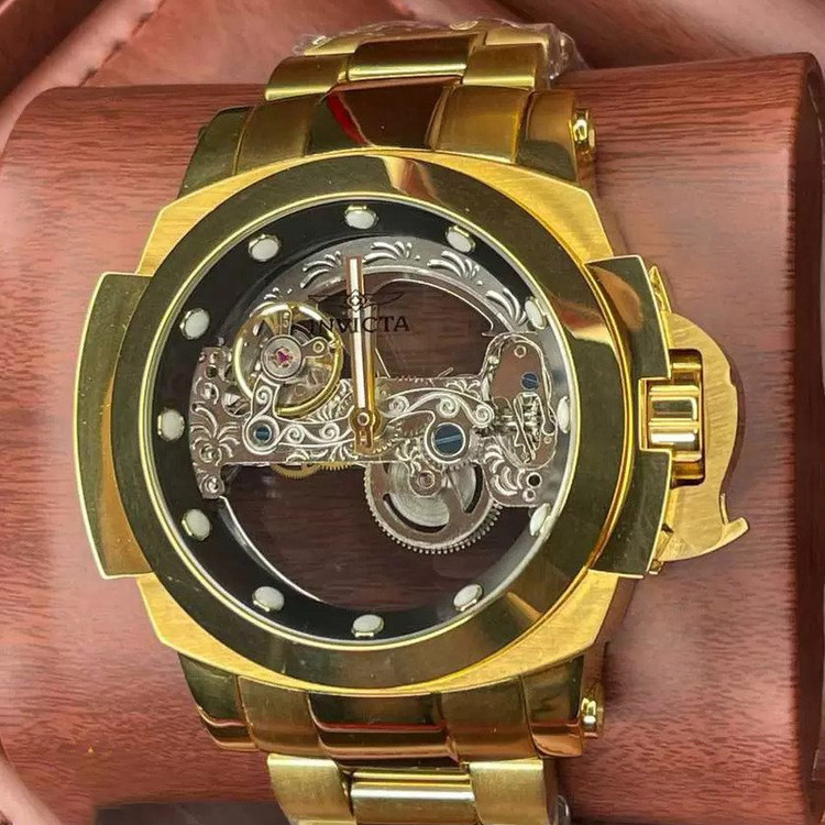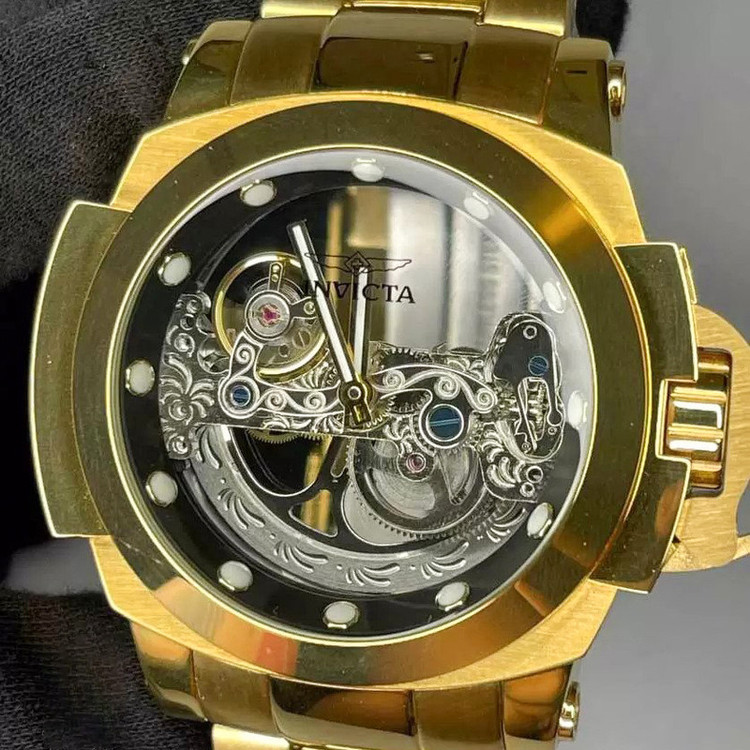 شاهکار غول پیکر اتوماتیک دیگری از برند مطرح آمریکایی، Invicta Watch . شاهکاری که اگر اهل ساعت هم نباشید، تا حالا ساعت هم نینداخته باشید و یا حتی اگر از ساعت مچی هم خوشتان نیاید، با دیدنش وسوسه خواهید شد. همان ساعتی است که شاید شما را مدهوش کند! فقط نگاهی به ابهت این ساعت مچی بیاندازید و روزی را در ذهنتان ببینید که یکی ازین ساعت ها را در دستتان دارید! مطمئنا خیره کننده خواهد بود! قاب براق به همراه بند و قفل استیل آن هر کسی را مجذوب خودش می کند. مسلما یکی از نقاط قوت ساعت مچی Invicta صفحه بزرگ 46 میلی متری آن است. به این نقاط قوت موتور سوئیسی از نوع کوارتزی را هم اضافه کنید. ساعتی که اگر مراقبش باشید حالا حالاها برایتان کار خواهد کرد. شیشه استفاده شده در این نوع ساعت مچی ضدخش است.این ساعت قوی ترین اتوماتیک جهان هست