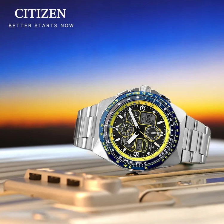 این مدل از ساعت مچی های مردانه برند سیتیزن دارای بدنه و بند استیل با ترکیب رنگ نقره ای و سرمه ای و زرد خاص خود صاحب ابهت و جذابیت بی نظیری شده است.این ساعت برند سیتیزن اکودرایو بوده و قابلیت شارژ با نور محیط را دارد. همچنین این ساعت سیتیزن دارای امکانات پرومستر و خلبانی و تنظیم رادیویی و تقویم بی نهایت و وقت جهانی و زمان سنج 24 ساعت و هشدار میباشد. از ویژگی های منحصر بفرد این طرح از ساعت سیتیزن میتوان به قابلیت ذخیره شارژ باطری تا 42ماه و نمایگشر وضعیت 24ساعته اشاره کرد.