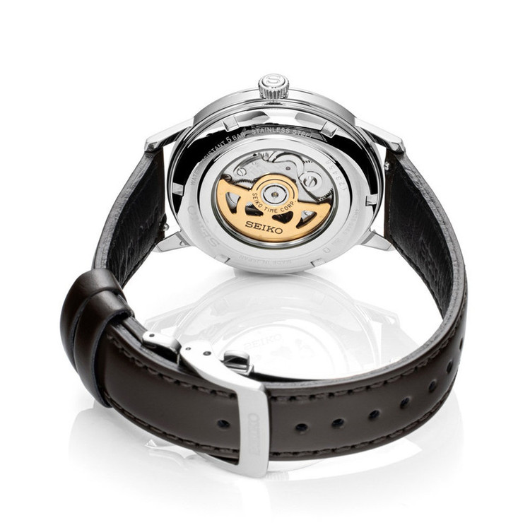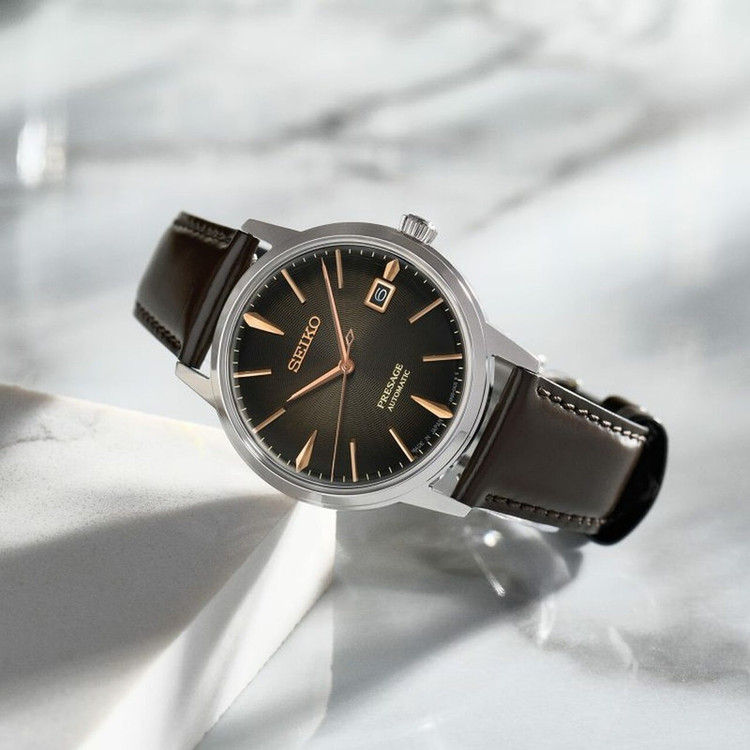 این طرح از برند سیکو از سری ساعتهای پریسیج این برند قدیمی و محبوب میباشد. سری پریسیج سیکو دارای لیبل ساخت ژاپن (MADE IN JAPAN) بوده و از لوکس ترین سریهای برند سیکو است. این مدل دارای طراحی بسیار ساده و مجلسی و شیک و لوکس است و برای تیپهای مجلسی و شخصیتی بسیار مناسب میباشد. بند چرم ساعت را میتوان به راحتی با کفش و یا کمر و یا کیف چرمی ست نمود. شیشه ی محدب مانند ساعت نیز به نوبه ی خود زیبایی این ساعت را نشان میدهد و از دور نمای بسیار جالب و زیبایی به ساعت میدهد.