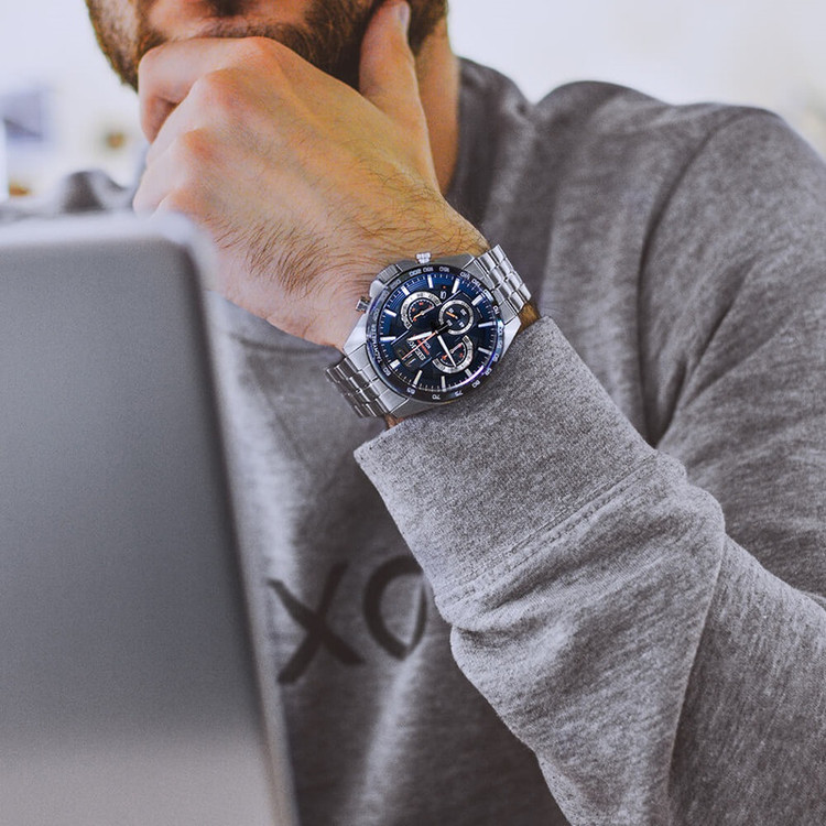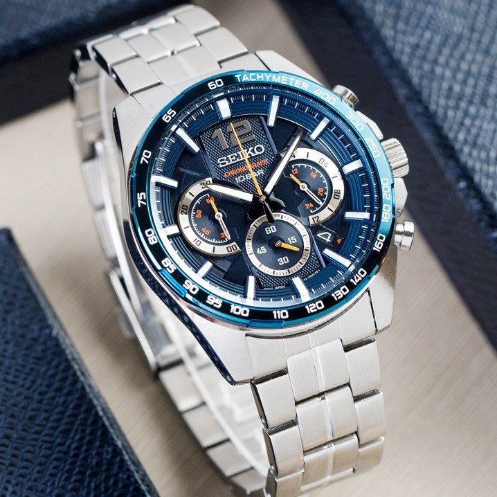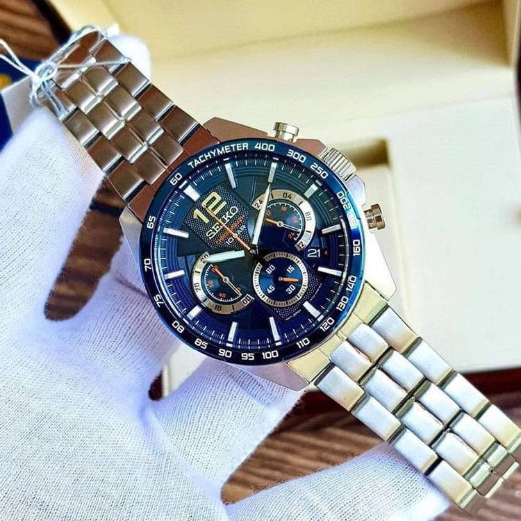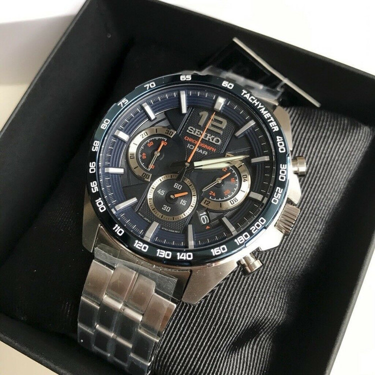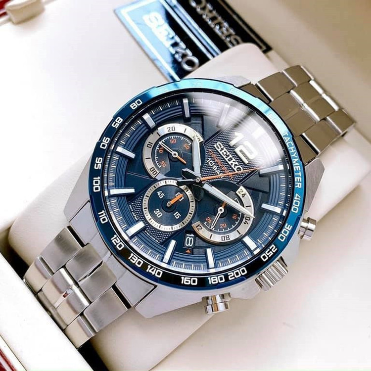 این طرح از برند ساعت سیکو با طراحی و رنگ خاص خود برای تیپهای نسبتا اسپرت بسیار مناسب میباشد. بند و بدنه ی این ساعت سیکو از جنس استیل است که از ترکیب رنگهای نقره ای و نارنجی و سرمه ای در آن استفاده شده. از ویژگیهای منحصر به فرد این ساعت میتوان به طراحی بسیار شیک و اسپرت ساعت در عین مجلسی بودنش اشاره کرد. این ساعت سیکو چند موتوره یا کرنوگراف بوده و عقربه های کوچک آن کرنومتر هستند و همچنین دارای نمایشگر روزهای ماه و وضعیت 24 ساعته نیز هست. اعداد دور صفحه این ساعت تاچمتر هستند که برای محاسبه و سنجش سرعت استفاده می شوند.