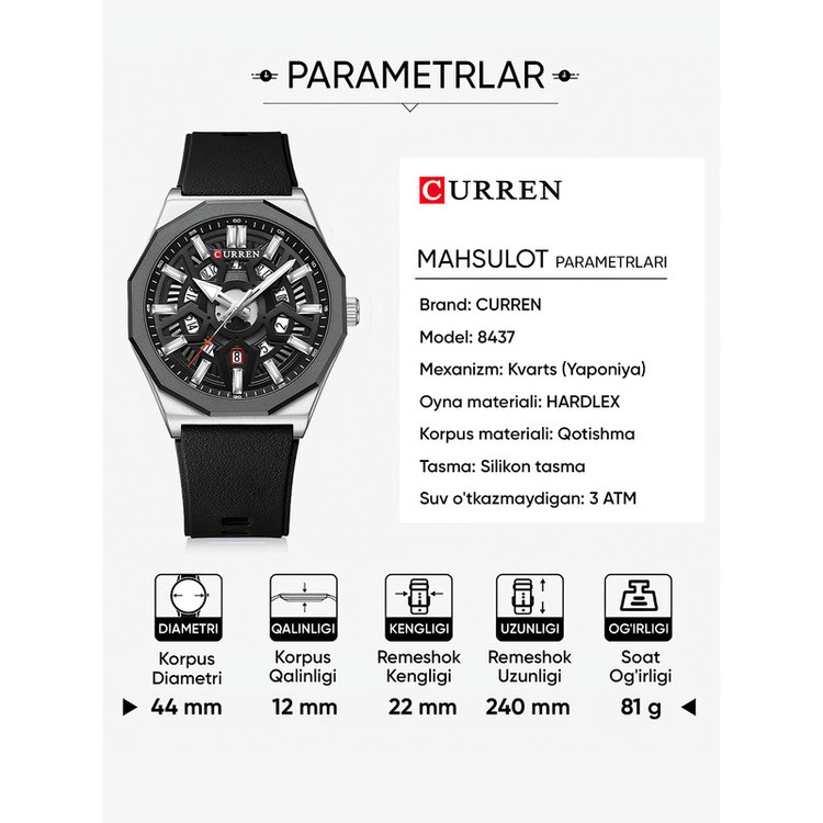 ساعت مچی عقربه‌ای مردانه کورن واتچ مدل 8437BL
