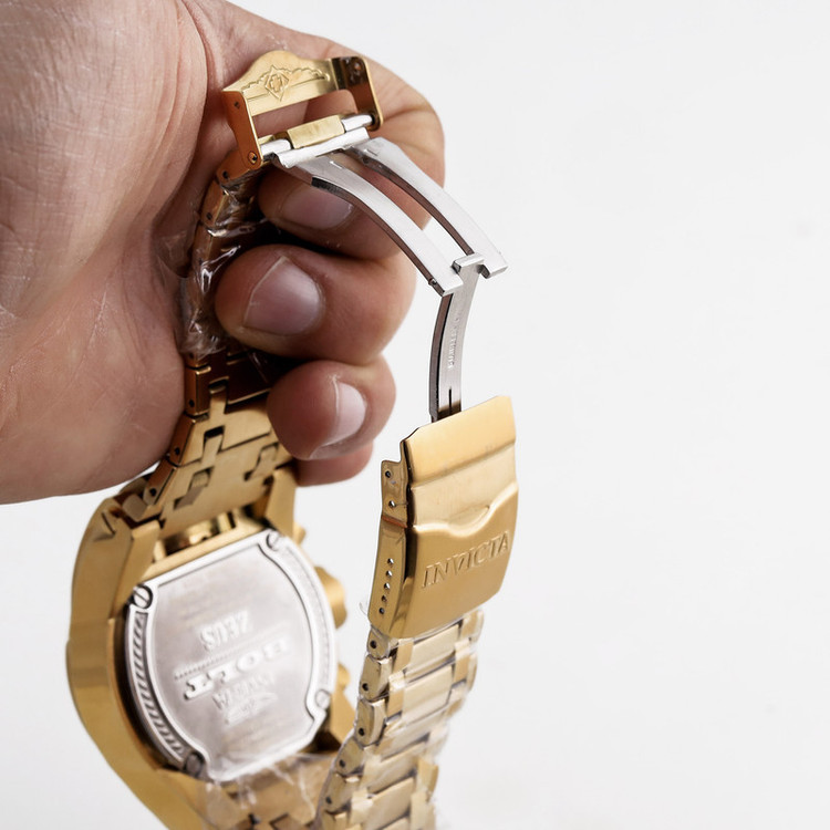 شاهکار غول پیکر دیگری از برند مطرح سوئیسی، Invicta Watch Group. شاهکاری که اگر اهل ساعت هم نباشید، تا حالا ساعت هم نینداخته باشید و یا حتی اگر از ساعت مچی هم خوشتان نیاید، با دیدنش وسوسه خواهید شد.این مدل از ساعت اینویکتا دارای سایز بسیار بزرگ بند و بدنه و تاج می باشد و بسیار جلوه گر و زیباست. بند این ساعت قابلیت تنظیم سایز میکرو با تغییر پین و ماکرو با کاهش تعداد بندک هاست. این ساعت برای افراد با سایز های لارج L به بالا قابل استفاده است ولی بیشتر به افراد با سایز 2XLو 3XL و 4XL توصیه می شود.