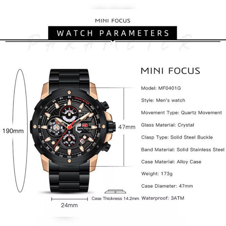 ساعت مچی عقربه‌ای مردانه مینی فوکوس مدل کرنوگراف MF0401