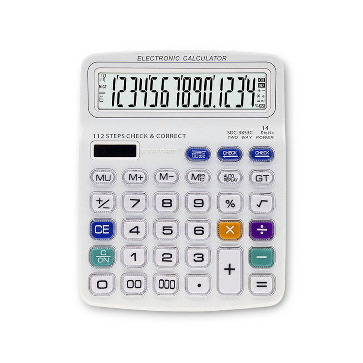 ماشین حساب سیتی فری مدل SDC-3833C جزو با کیفیت ترین و زیبا ترین ماشین حساب های بازار است. خصوصیاتی مثل کلید های شیشه ای که باعث میشود رنگ کلید ها از بین نرود، صفحه نمایش با اندازه مناسب، پنل خورشیدی واقعی (حتی بدون باتری با نور مناسب اتاق کار میکند) این محصول را از دیگر محصولات متمایز میکند.
