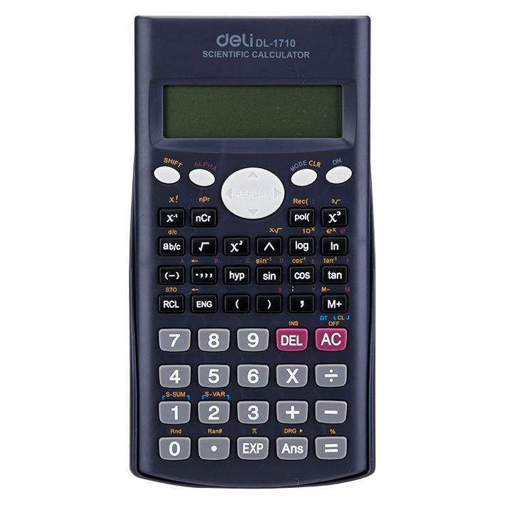 متاسفانه این کالا در حال حاضر موجود نیست. میتوانید از طریق لیست بالای صفحه، از محصولات مشابه این کالا دیدن نمایید.ماشین حساب مهندسی دلی مدل 1710 یک مدل حرفه ای دارای صفحه نمایش بزرگ 2 سطری با قابلیت نمایش 10+2 رقم (12 رقم در سطر بالا و 10 رقم در سطر پایین) می باشد. صفحه کلید و کاور پشت محصول از پلاستیک نرم و روان با ماندگاری بالا ساخته شده است. این ماشین حساب علاوه بر دکمه خاموش OFF مجهز به سیستم خاموشی خودکار نیز می باشد. کلید تغییر حالت Shift، کلید حروف Alpha، کلید های جهتی، کلید حذف آخرین ورودی Del، کلید های Rnd، Mode، RCL، ENG و ... همگی امکانات گسترده ای را در اختیار شما قرار می دهند. می توانید محاسبه توابع مثلثاتی (sin , cos , tan)، توابع هایپربولیک (sinh , cosh , tanh)، توان و لگاریتم (Log,^)، -/+ و →، عملیات درصد گیری (%)، فاکتوریل (!)، جذر (√)، تابع مولد (Rnd)، تفکیک ارقام بصورت سه رقمی، قابلیت برگشت و ... را انجام دهید.