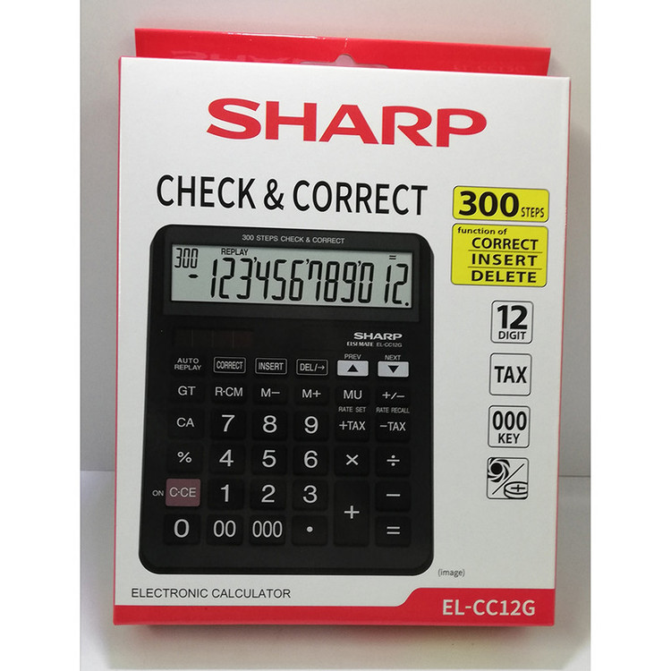 کنترل محاسبات تا 300 مرحله و امکان تصحیح هر مرحله با کلید CORRECT محاسبات مالیات (TAX) محاسبه ی درصد کلید های دو صفر و سه صفر صفحه نمایش بزرگ و شیب دار نمایش عملیات در حال انجام دکمههای پلاستیکی